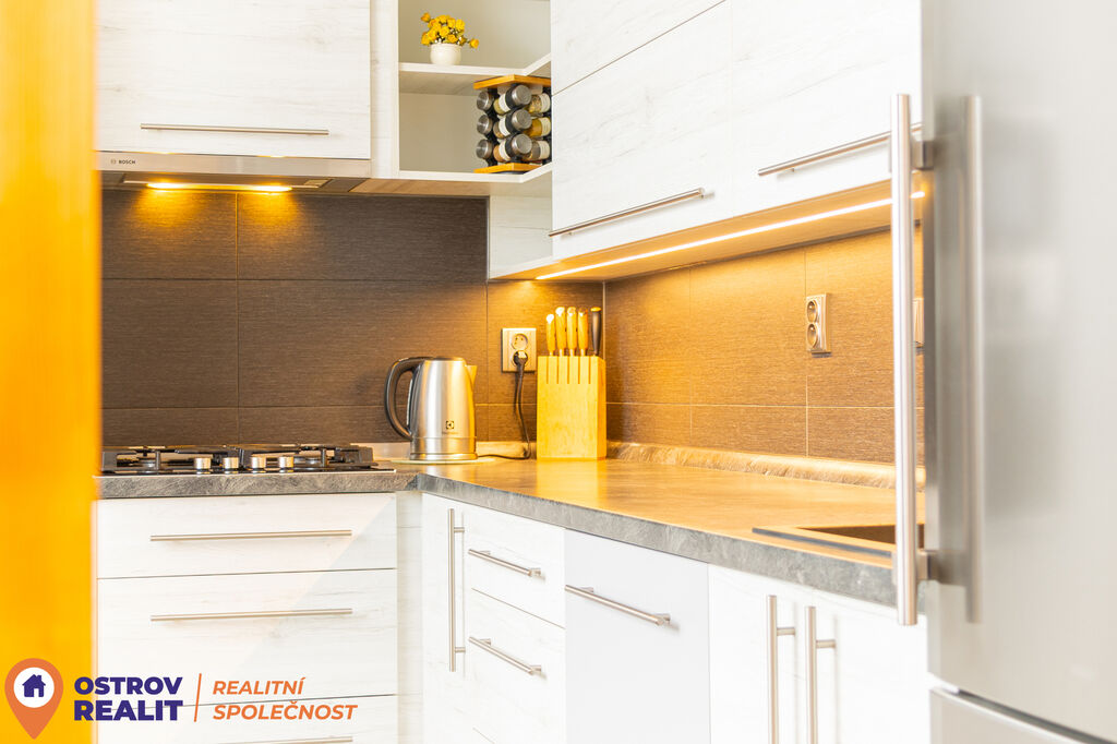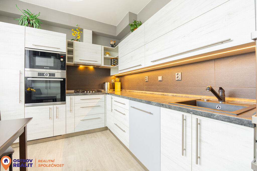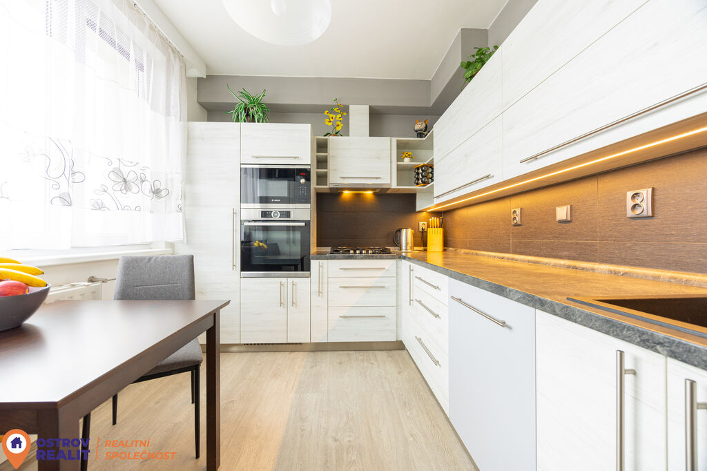 Byt má vyzděné jádro, prakticky řešenou koupelnu, moderní kuchyňskou linku s vestavnými spotřebiči.