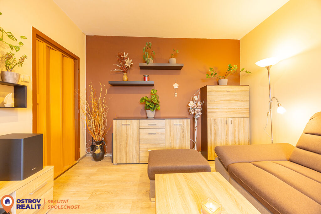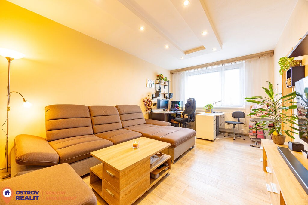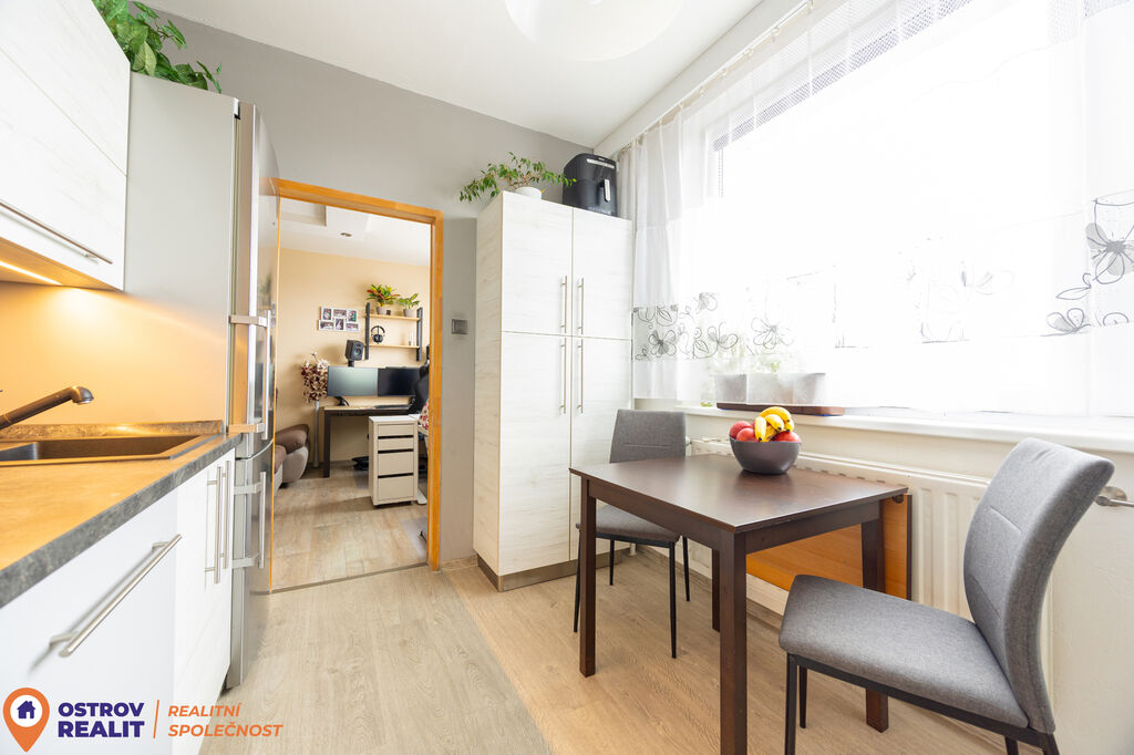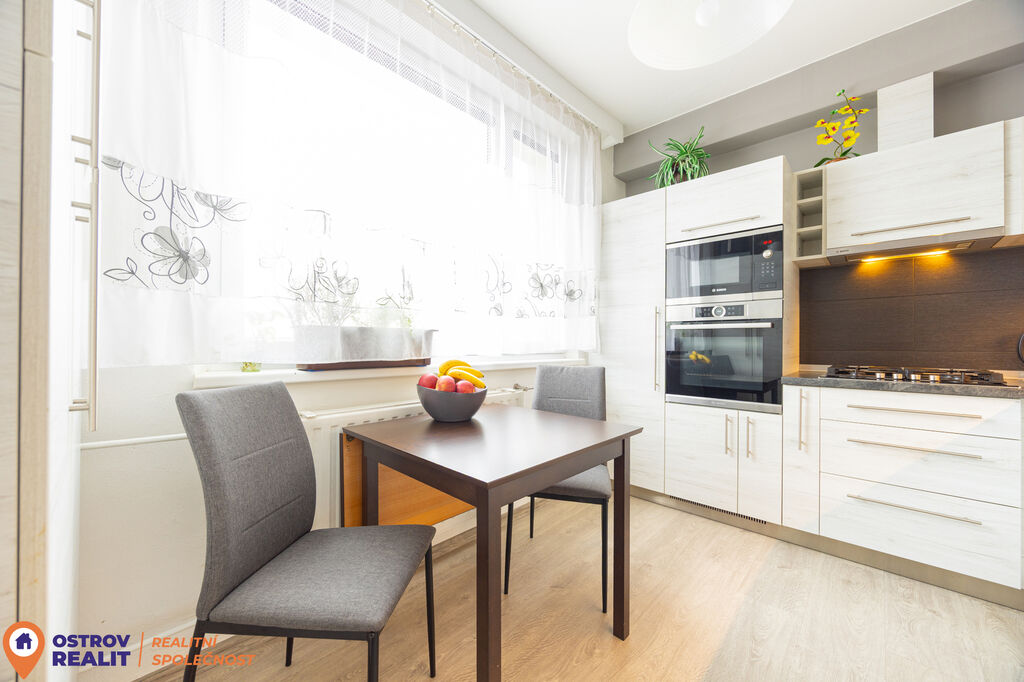 Dispozice bytu je velmi dobře řešená – nabízí dostatek úložného prostoru v komoře a samostatné, neprůchozí, dobře využitelné pokoje. Z ložnice je vstup do zasklené lodžie, která poskytuje příjemné místo k posezení i za horšího počasí.