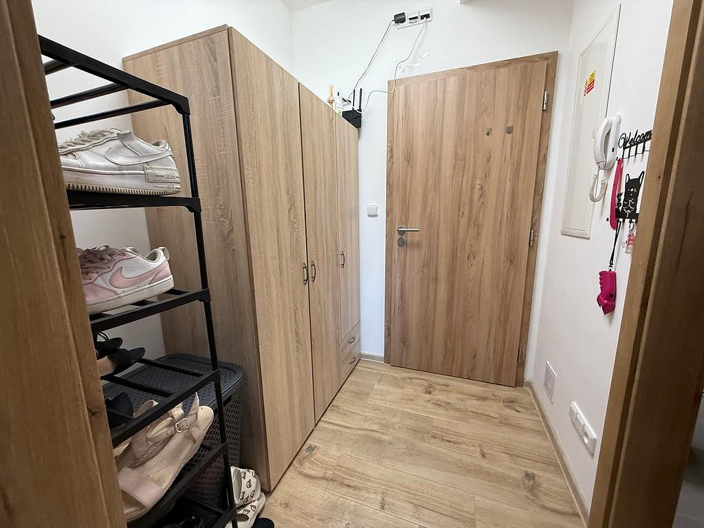 Byt je částečně vybaven, a to kuchyňskou linkou včetně spotřebičů, umyvadlovou skříňkou v koupelně a všechny místnosti jsou vybaveny svítidly.