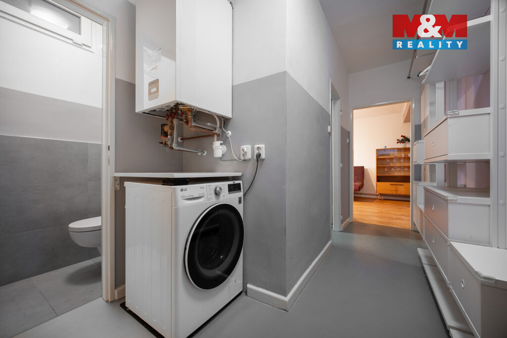 Součástí prodeje je veškeré vybavení – lednice, pračka, postel, televize i další nábytek, takže nový majitel se může rovnou nastěhovat bez nutnosti dalších investic.