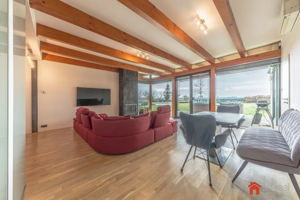 Exkluzivní nabídka jedinečného architektonicky řešeného rodinného domu, který nabízí dokonale propojený interiér s okolní přírodou a vysoký komfort zajištěný špičkovou technologii.