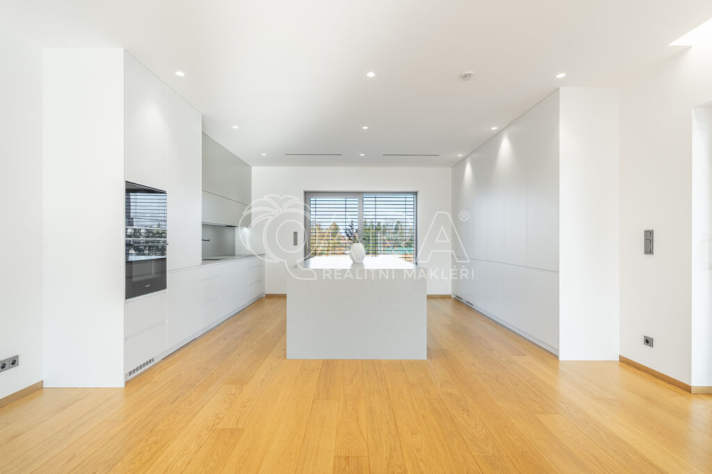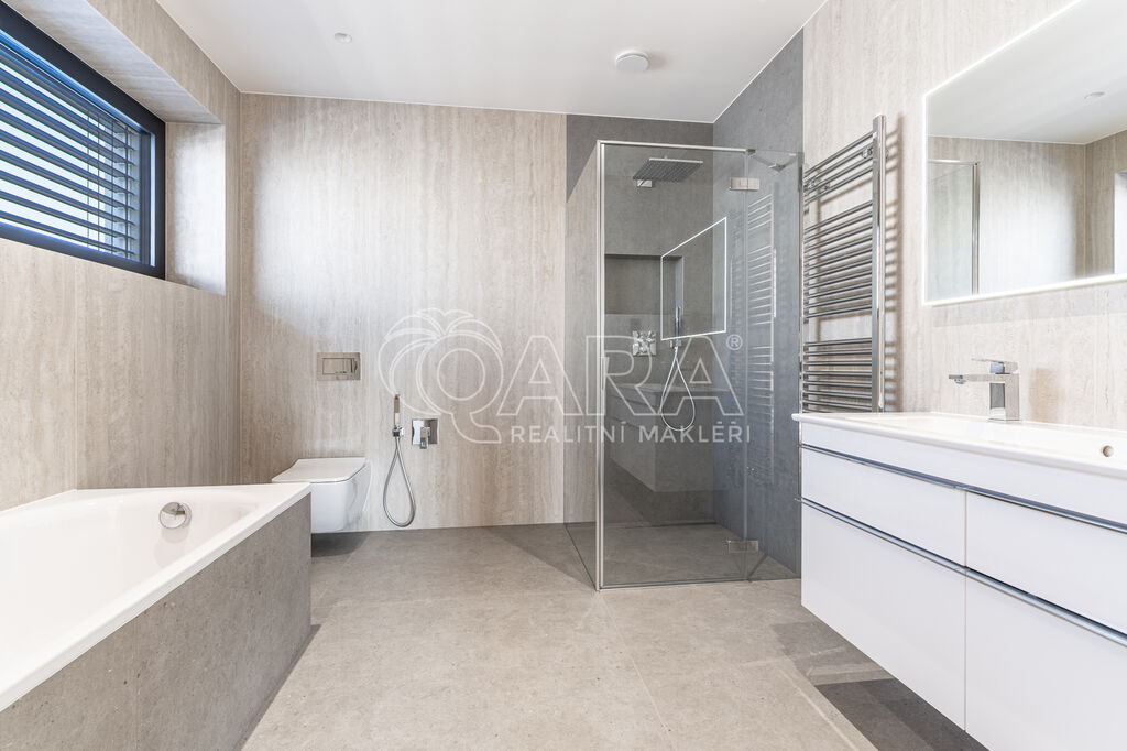 Velkorysá dispozice o rozloze 313m2 nabízí prostorné interiéry s důrazem na design a funkčnost. Vhodná pro rodinné bydlení i reprezentaci. Vysoce kvalitní materiály, podlahové vytápění, rekuperace ,skryté zárubně a vysoké dveře do stropu, koupelny s luxusními zařizovacími prvky, bazén.