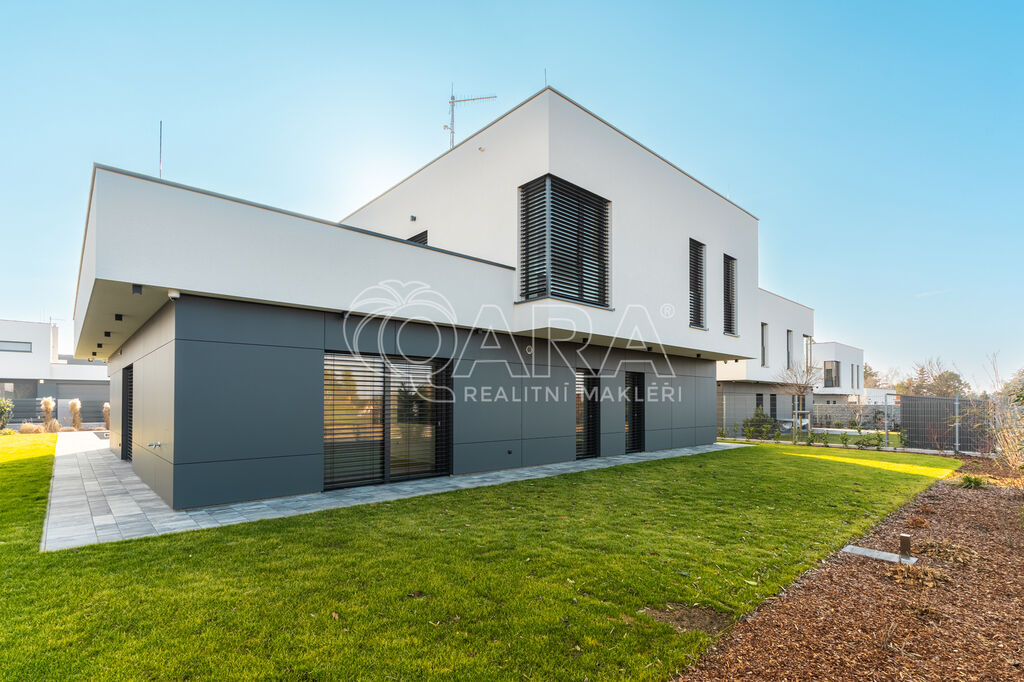 Zahrada s relaxačními zónami a možností posezení, samozavlažovacím systémem, robotickou sekačkou. Prostorná garáž pro několik vozidel a dostatek venkovních parkovacích míst. Vila je částečné zařízená a ihned k dispozici.