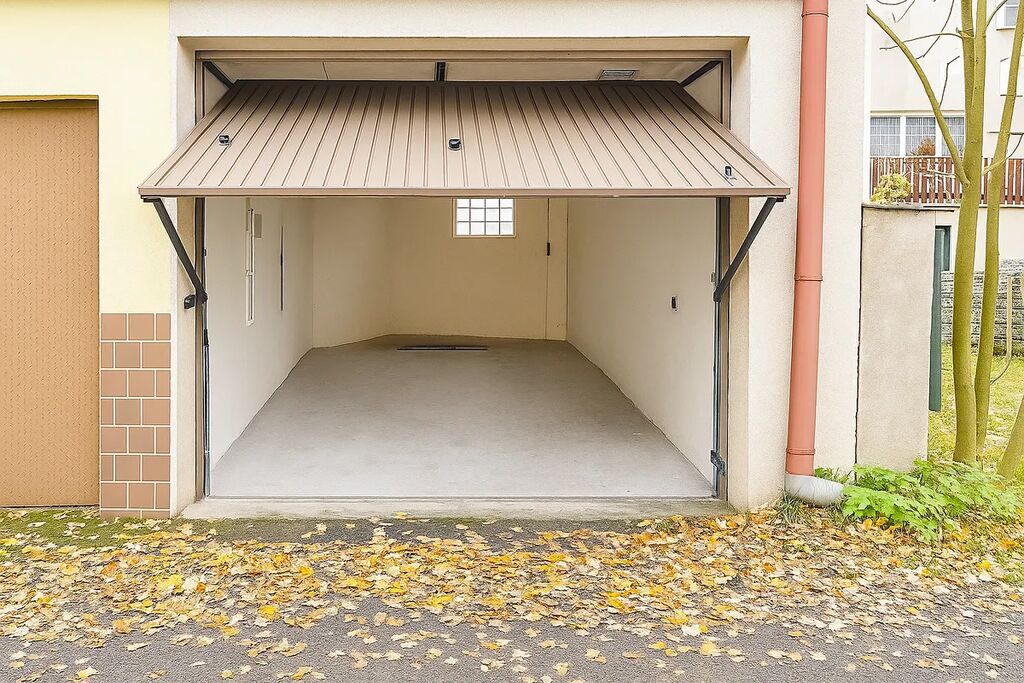 Garáž je vybavena elektrickými vraty na dálkové ovládání, která jsou navíc zajištěna přídavnými bezpečnostními zámky. Samozřejmostí je přívod elektřiny, a pokud byste chtěli vyšší úroveň zabezpečení, lze garáž připojit na centrální pult ochrany a policii.