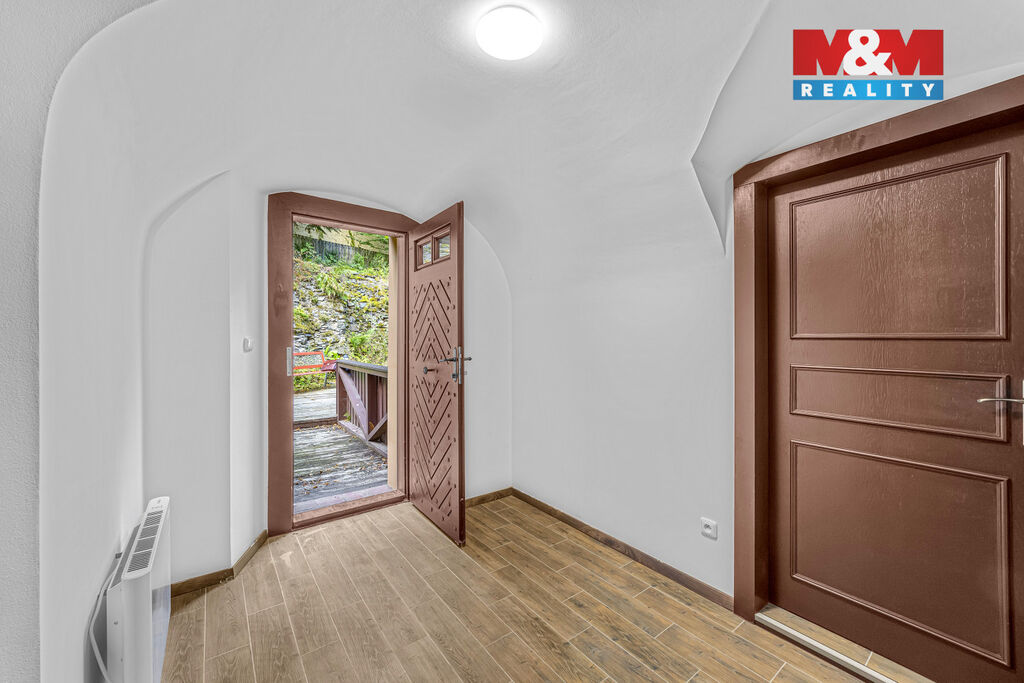 Dominantou je prostorný obývací pokoj s přípravou pro kuchyňskou linku o ploše téměř 30 m2 s nadstandardní dlažbou a podlahovým topením. Větší pokoj má 21,7 m2 a menší pokoj pak 12 m2. Koupelna s plochou 6,6 m2 je vybavena vanou, toaletou, umyvadlem, elektrickým bojlerem a přípravou na pračku. Přívod vody je zajištěn z místní studny v majetku SVJ.