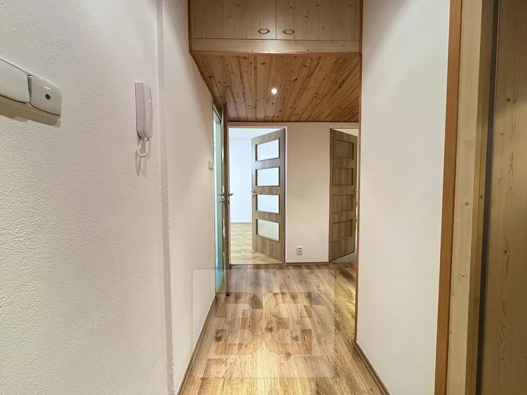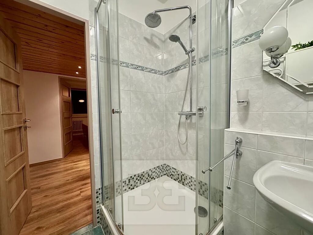 Vstupní chodba je velmi prostorná a nabízí velké množství úložného prostoru. Samostatné WC a koupelna vybavená vanou i sprchovým koutem zvyšují komfort bydlení.