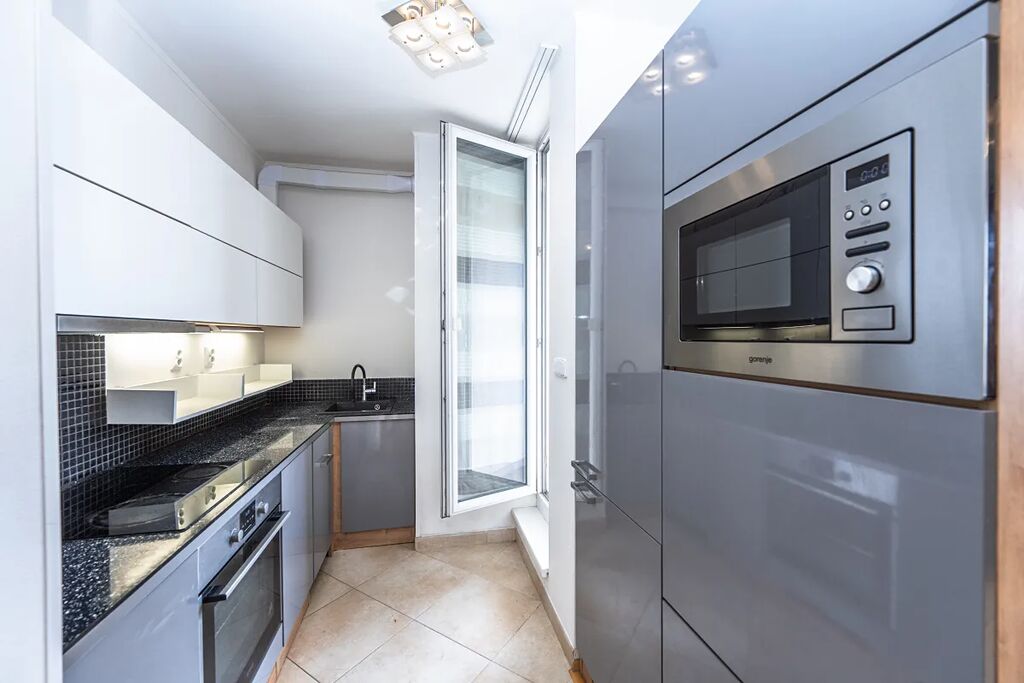 Byt 4+kk s užitnou plochou 89 m² nabízí prostorný obývací pokoj o výměře 26,7 m² s kuchyňským koutem vybaveným vestavěnými spotřebiči (trouba, varná deska, digestoř, myčka, lednice). Dále jsou k dispozici tři samostatné pokoje o velikosti 10,8 m², 13,5 m² a 13,3 m², koupelna s rohovou vanou a podlahovým vytápěním, samostatné WC, předsíň a komora.