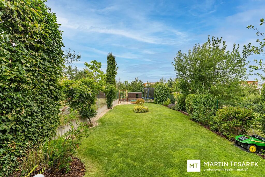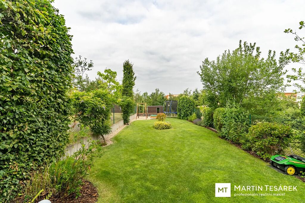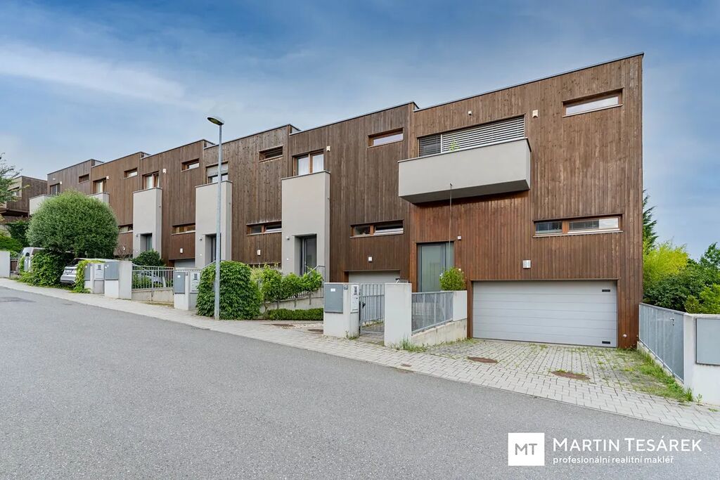Řadový dům z roku 2009 se rozkládá ve třech podlažích. V suterénu se nachází garáž o rozměrech 2,7 × 3,7 m, prádelna a menší sklad. V přízemí je dominantním prvkem prostorný obývací pokoj s krbem a plně vybavenou moderní kuchyňskou linkou. Z obývacího pokoje je vstup na terasu a do krásně udržované a vzrostlé zahrady o výměře 207 m², orientované na východ. V přízemí se dále nachází spíž a samostatné WC.