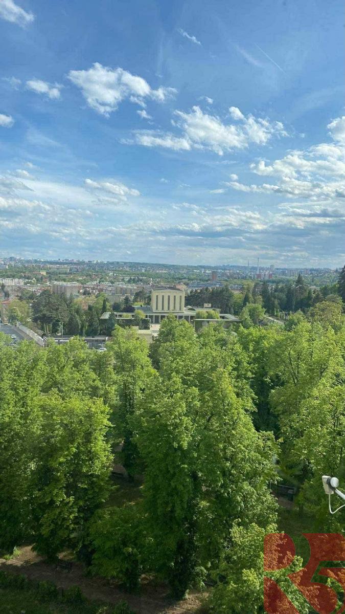 Byt se nachází v horních patrech domu v atraktivní lokalitě Vinohradský Palouk s volným výhledem na Prahu.