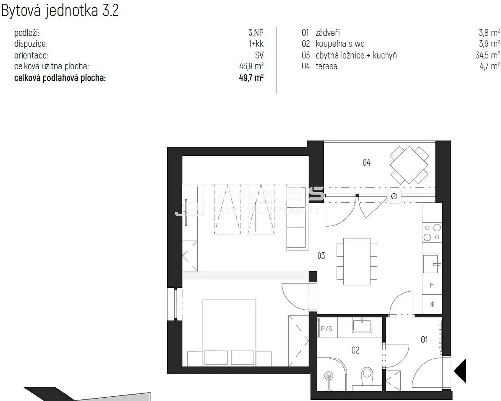 Nabízíme k pronájmu moderní a útulný byt 2+kk o užitné ploše 47 m², který se nachází ve 3. nadzemním podlaží s orientací na severovýchod. K bytu náleží garážové stání v domě. Hledáme spolehlivého dlouhodobého nájemníka.