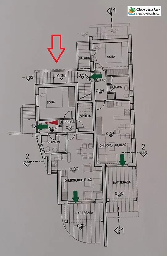Chorvatsko-Nemovitosti.cz má pro Vás dvoupokojový apartmán v přízemí novostavby a s prostorným dvorem. Apartmán je obklopen starými olivovými háji. Nejbližší pláž je 300 m a je písečná s kamínky.