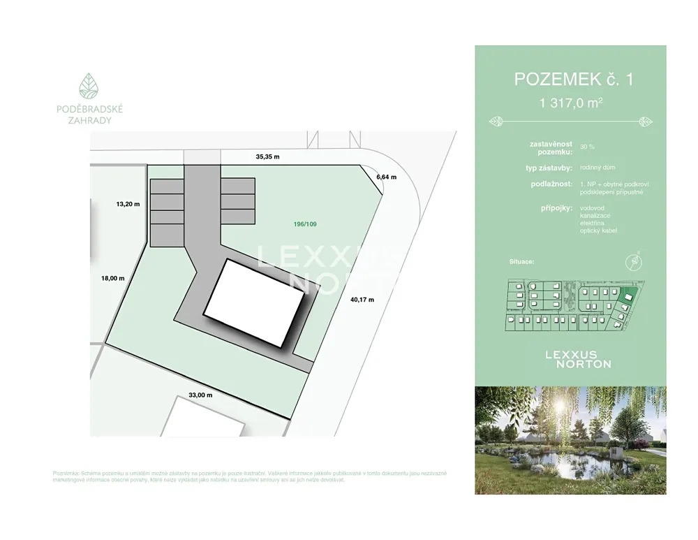 Nový projekt Poděbradské zahrady, který vyrostl na okraji Choťánek, v těsném sousedství lázeňského města Poděbrady, nabízí k prodeji stavební pozemek o celkové výměře 1317 m2.
