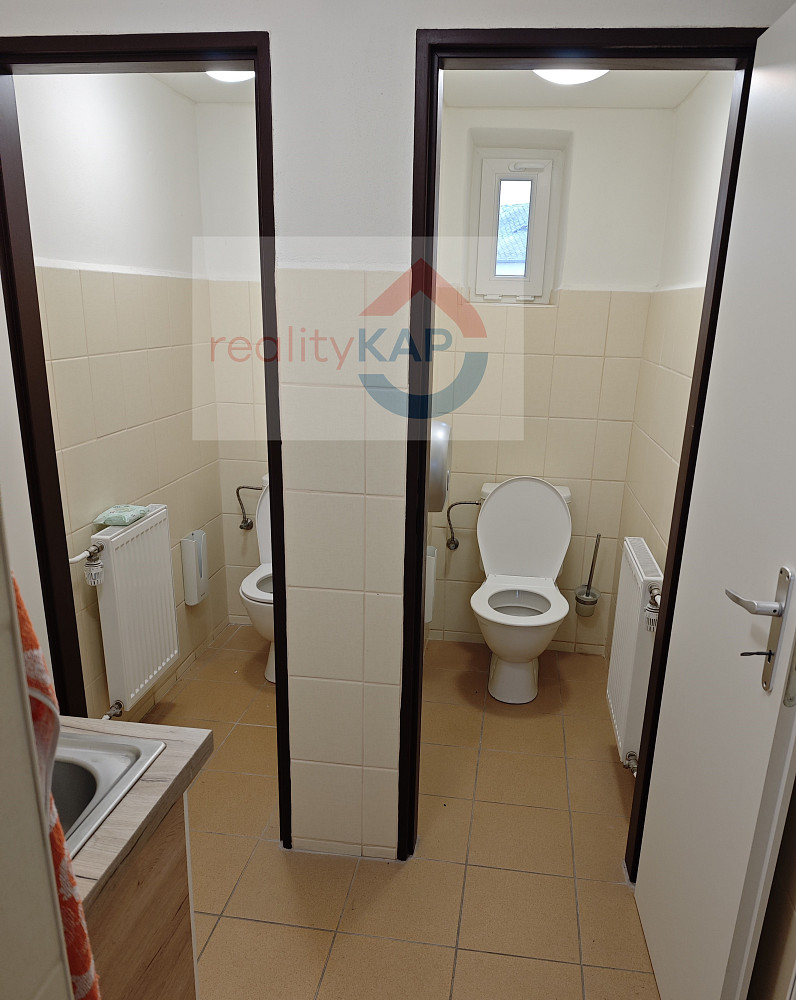 Pronajmeme prostory vhodné jako kanceláře nebo zázemí pro administrativu a služby v 1. patře budovy s vlastním samostatným vchodem. Jedná se o 3 místnosti o celkové ploše 68 m² doplněné sociálním zázemím (viz půdorys). Prostory jsou centrálně vytápěny.