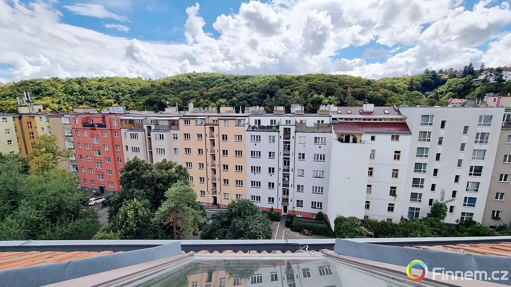 Prostorný a světlý byt s volným výhledem na Prahu se nachází v pátém a šestém patře zděného domu s výtahem. Výměra bytu dle prohlášení vlastníka je 140m2. Výměra braná až ke stěnám podkroví je cca 160m2. Byt je momentálně dispozičně řešen jako jeden velký otevřený prostor. Ve spodním patře, je oddělena pouze koupelna, toaleta a šatna. Dále je volný prostor bez příček v druhém patře. Dispozice bytu lze upravit dle vlastních preferenci vybudováním příček v obou patrech.
