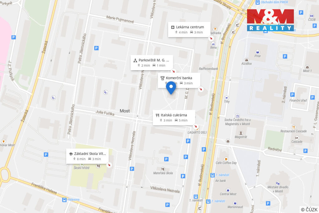 Nabízíme k prodeji bytovou jednotku 1+kk v osobním vlastnictví. Vhodné k investici, s nízkými náklady na bydlení. Byt prošel částečnou rekonstrukcí. Součástí bytu je lodžie a sklep. Dům se dvěma výtahy, ve kterém se byt nachází, je v centru města Mostu. Veškerá občanská vybavenost v blízkém okolí. S financováním Vám rádi pomůžeme. Pro více informací neváhejte kontaktovat makléře.