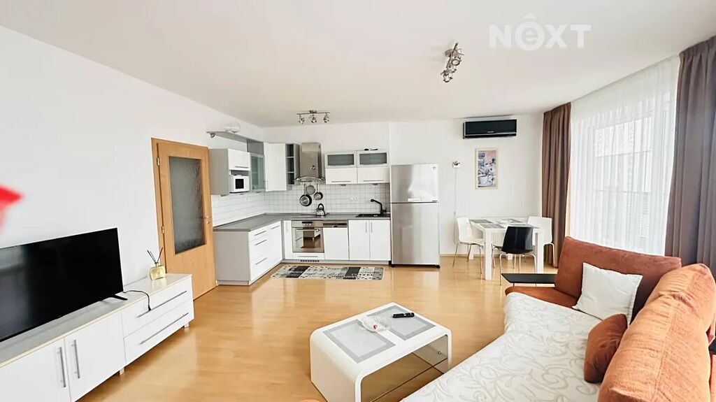 Byt je kompletně zařízen kvalitním designovým nábytkem a připraven k okamžitému nastěhování – stačí si přinést osobní věci. K dispozici je velkorysá šatna a vestavěné skříně v chodbě i ložnici, které poskytují dostatek úložného prostoru. Klimatizace.