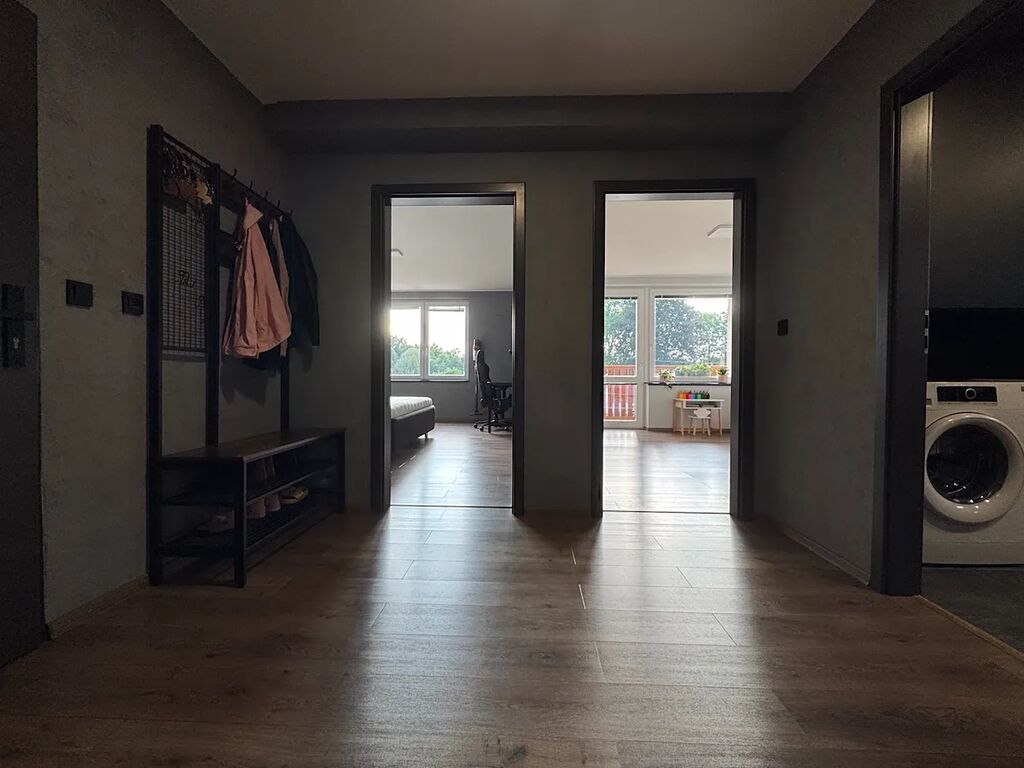 Byt je tmavší a industriální. Navržen pro ty, kteří hledají originální a osobité bydlení s moderní atmosférou, ideální pro rodinu, která preferuje výrazný charakter interiéru.