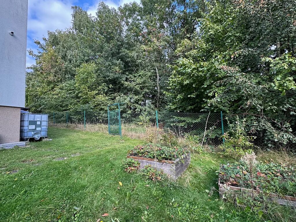 Součástí celé nemovitosti je také rozlehlá společná zahrada s bytem z druhého nadzemního podlaží, upravená, o velikosti 1233 m², najdete zde ovocné stromy, keře, pergolu, dětskou zónu, ale i další místa na parkování aut pro hosty.