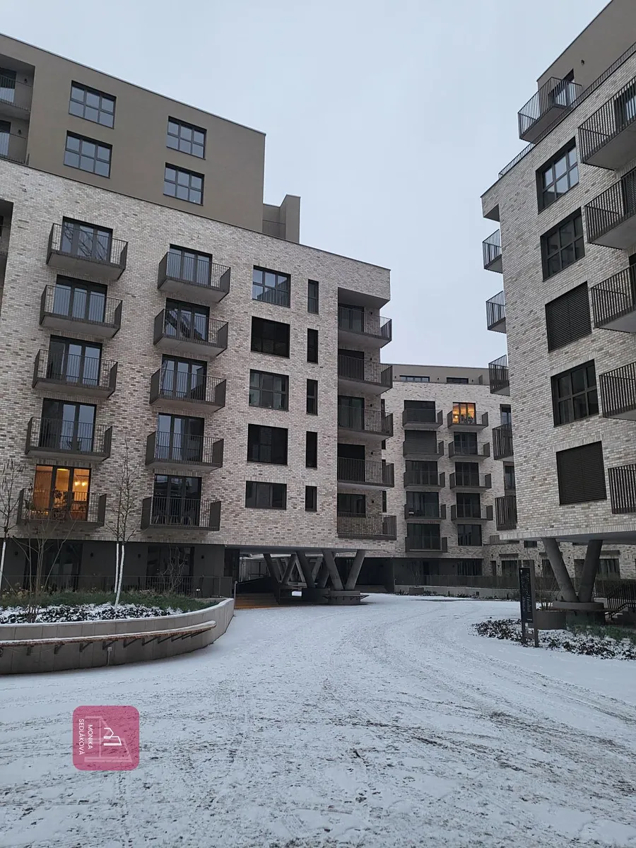Moderní byt o velikosti 65 m s balkonem ( 5m2) se nachází v novostavbě Karlův dům v osmém patře s výtahem . Byt je orientován do vnitrobloku, k bytu náleží sklepní kóje, k dispozici je společná kolárna s vybavením pro údržbu a opravu kol.