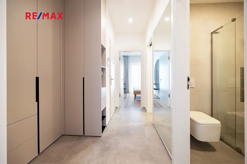Nabízíme k pronájmu zcela nový byt 2+kk (43m²) s dvěma prostornými terasami o celkové ploše 21 m². Nemovitost se nachází v posledním 8. nadzemním podlaží (nově zkolaudována půdní vestavba) a nabízí výjimečné soukromí, světlo a výhledy.