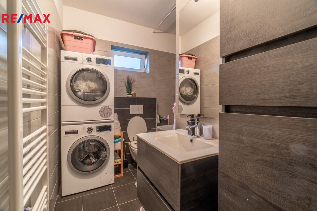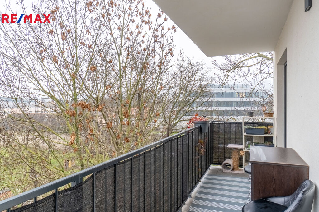 Parkování a úložné prostory: V ceně nájmu je samostatné garážové stání. K bytu náleží sklepní kóje 2 m².