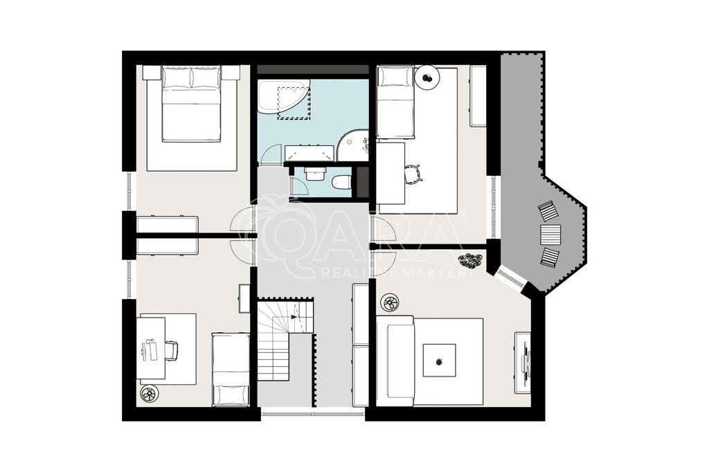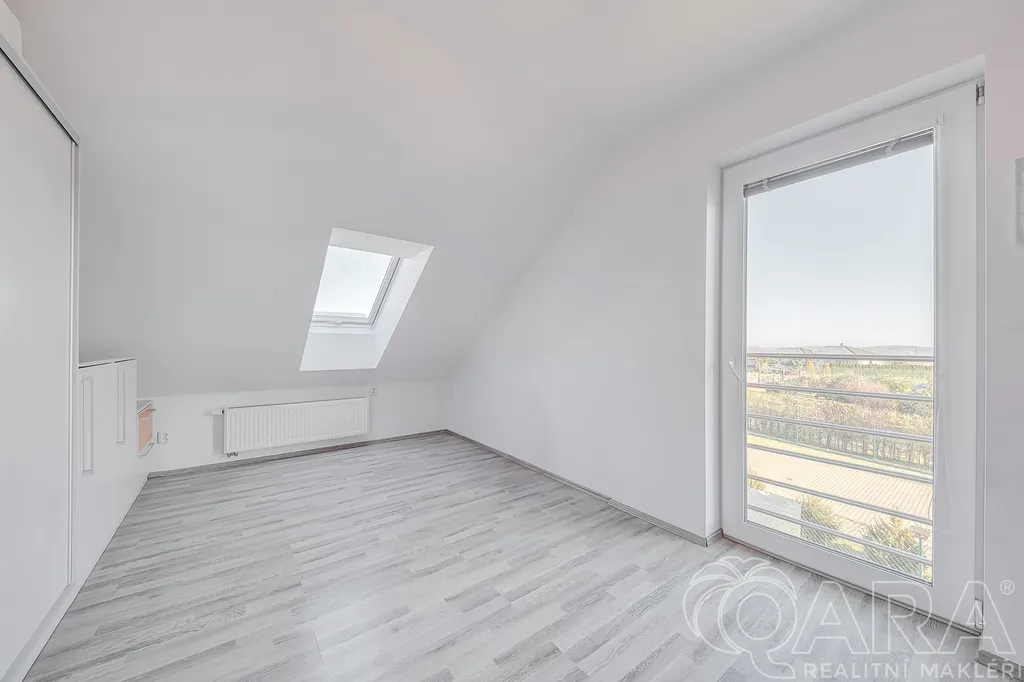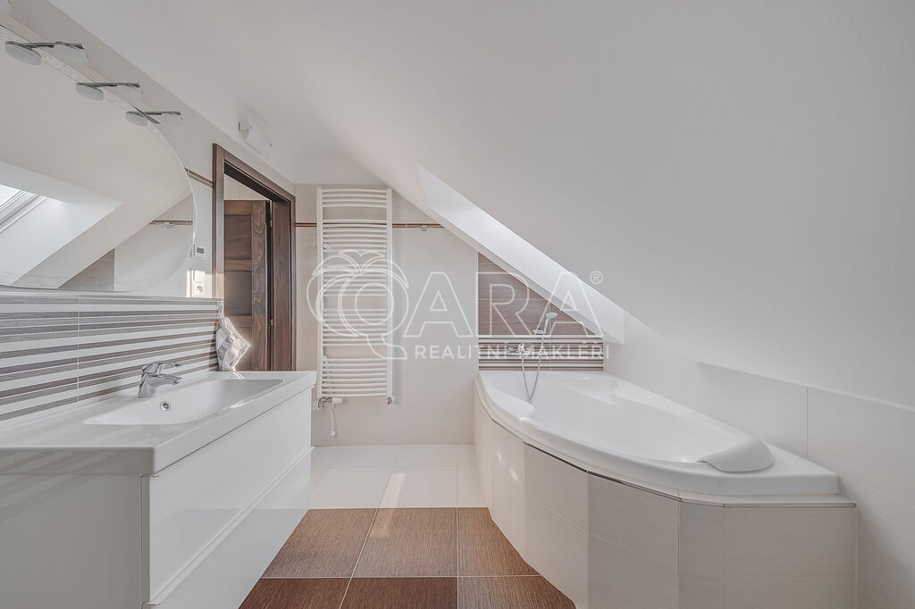 2. NP - hala s přístupem na pochozí půdu, čtyři pokoje (17,3 m2, 15 m2, 15,6 m2, 15,6 m2), z toho dva z nich se vstupem na balkon, rodinná koupelna s vanou, sprchovým koutem a samostatné WC