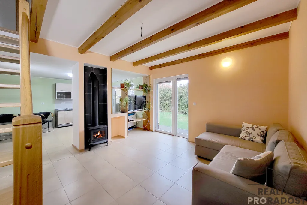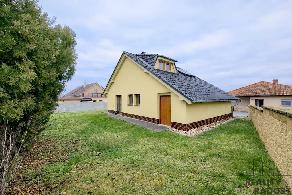 Zahrada o rozloze 338 m² poskytuje příjemné soukromí, prostor pro relaxaci i rodinné chvíle. Pozemek je přehledný, dobře uspořádaný a nenáročný na údržbu. Součástí domu je garáž zajišťující bezpečné parkování i praktické úložné zázemí.