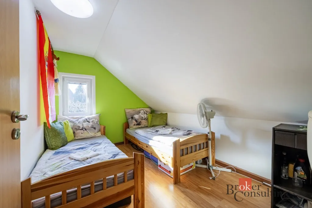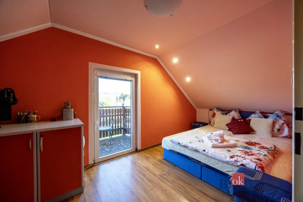 Tři pokoje, z nichž jeden má vstup na balkon s krásným výhledem do okolní přírody. Pokoje jsou vhodné jako ložnice, dětské pokoje nebo pracovna.