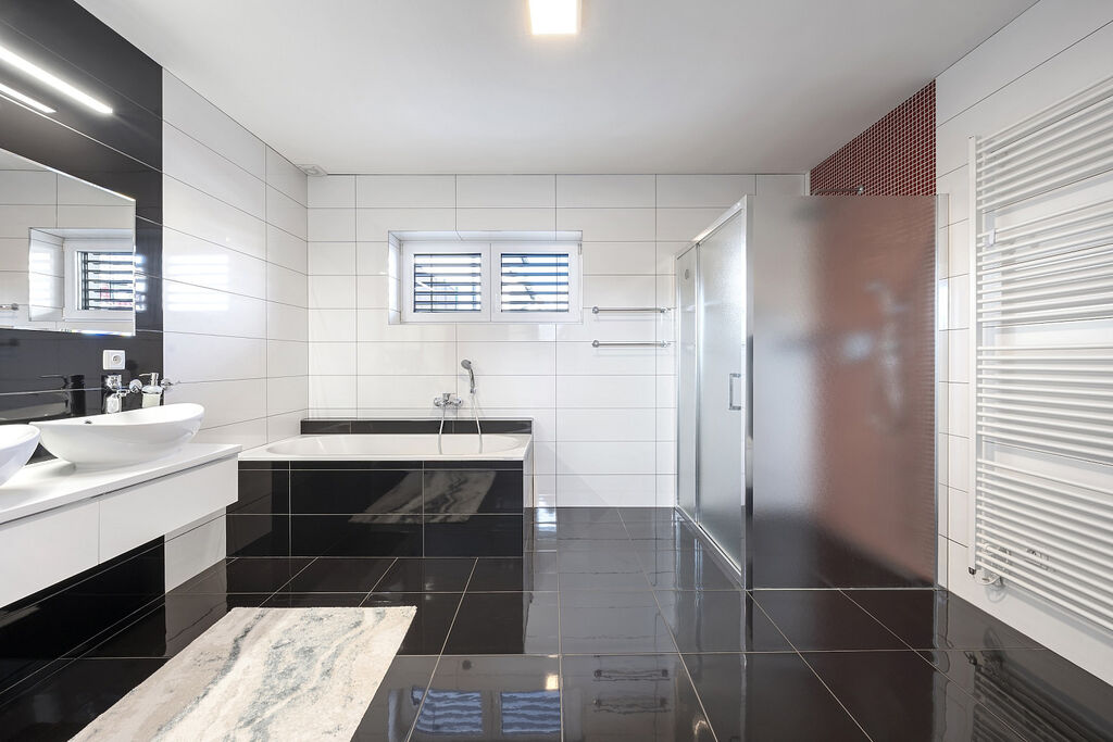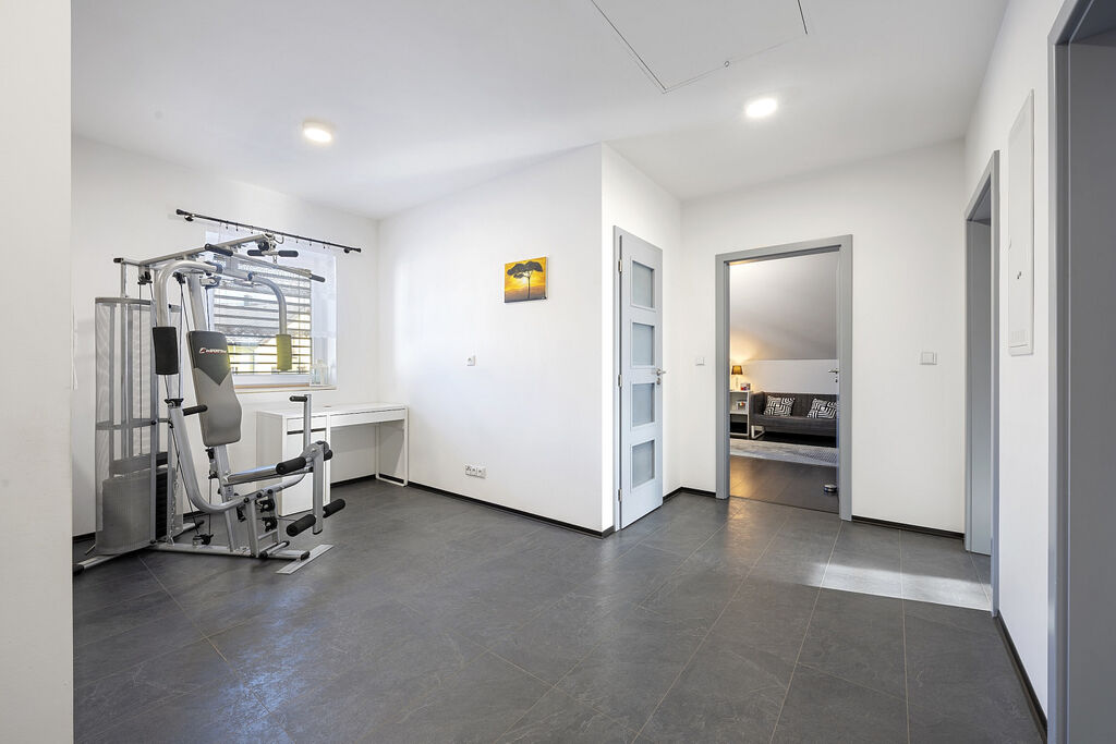 Další úspora při provozu domu je zajištěna například využíváním užitkové vody z vrtané studny. Nemovitost je samozřejmě napojena i na obecní vodovod a dále na kanalizaci.