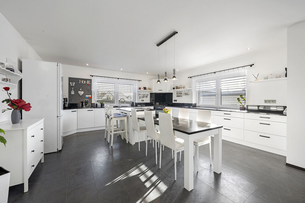 Samostatně stojící dům o velikosti 5+kk a pracovnou nabízí velkorysý prostor pro komfortní a moderní bydlení. Velikost užitné plochy činí 225 m² a celková podlahová plocha je 289 m². Velký pozemek o rozloze 803 m² poskytuje dostatek soukromí a místa pro odpočinek a rekreaci.