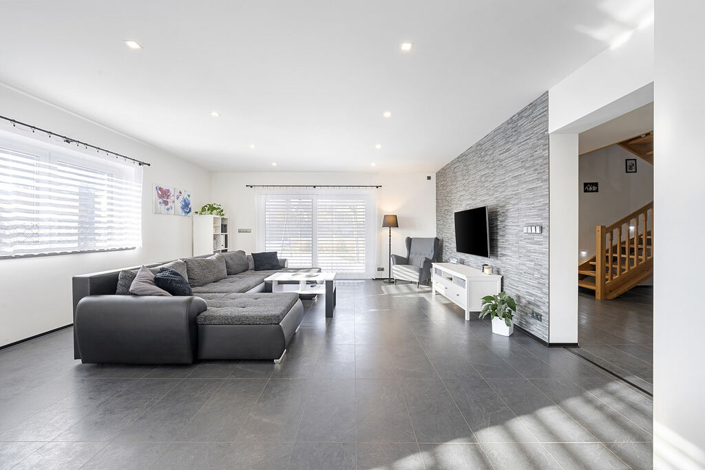 Z obývacího pokoje je vstup na velkou terasu.