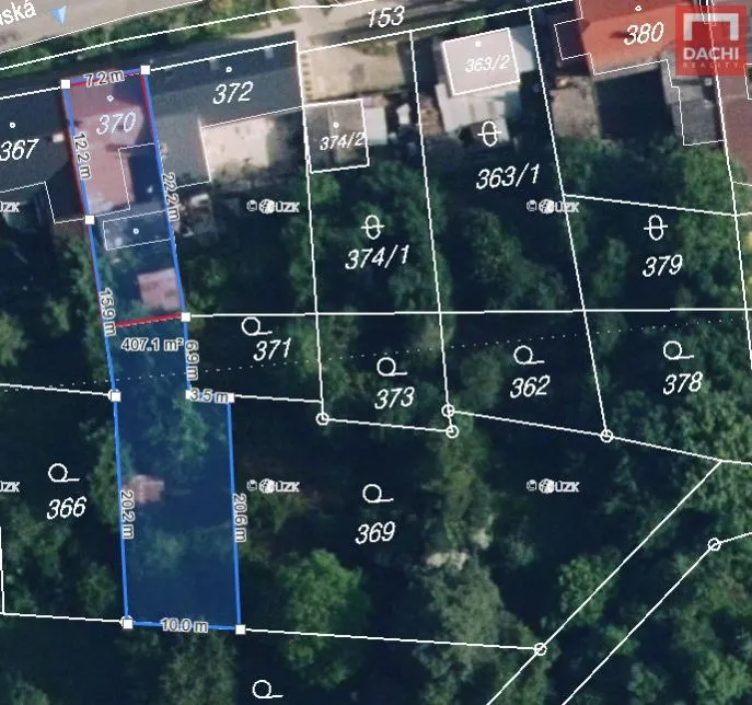 Součástí nemovitosti je pozemek o výměře 409 m, který poskytuje dostatek prostoru pro rodinné bydlení i zahradu určenou k odpočinku nebo drobnému hospodářskému využití. K pozemku je možné dokoupit dalších přibližně 700 m. Dům je napojen na obecní kanalizaci, vodovod i plynovod, což umožňuje plné využití dostupných inženýrských sítí.