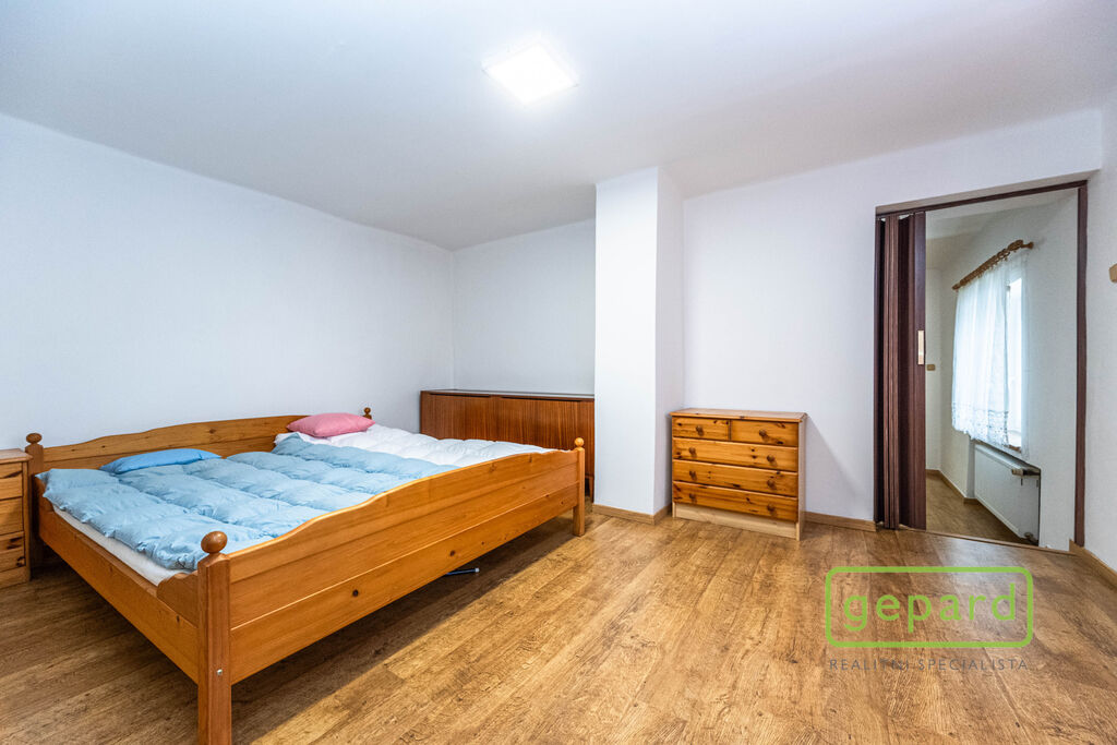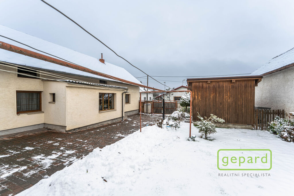 Realitní společnost Gepard Vám nabízí k pronájmu rodinný dům o zastavěné ploše 113 m2 a dispozicí 3+1 s verandou, šatnou, prádelnou a sklepem. Dům prošel postupnou rekonstrukcí cca před 8-12 let, je stále vytápěn a nyní čeká na nového nájemníka. Je zateplený a okna jsou plastová. Celková velikost pozemku je 491 m2. Dům je vytápěn plynovým kotlem, který rovněž zajišťuje ohřev užitkové vody. Vstup do domu je verandou, ze které je vstup na samostatnou toaletu a do hlavní části domu. Kuchyně s jídelnou je kompletně vybavena kuchyňskou linkou vč. spotřebičů, je zde i praktická komora na potraviny. Koupelna je vybavena prostorným bezbariérovým sprchovým koutem, umyvadlem a topným žebříkem. Obývací pokoj je vybaven nábytkem vč. TV. Další pokoj je vlevo od kuchyně, průchozí a za ním se nachází prostorná ložnice s šatnou. Odtud se dostaneme do přístavby, kde je prádelna a vstup do sklepa. Možnost parkování na pozemku u domu. Garáž není součástí pronájmu.