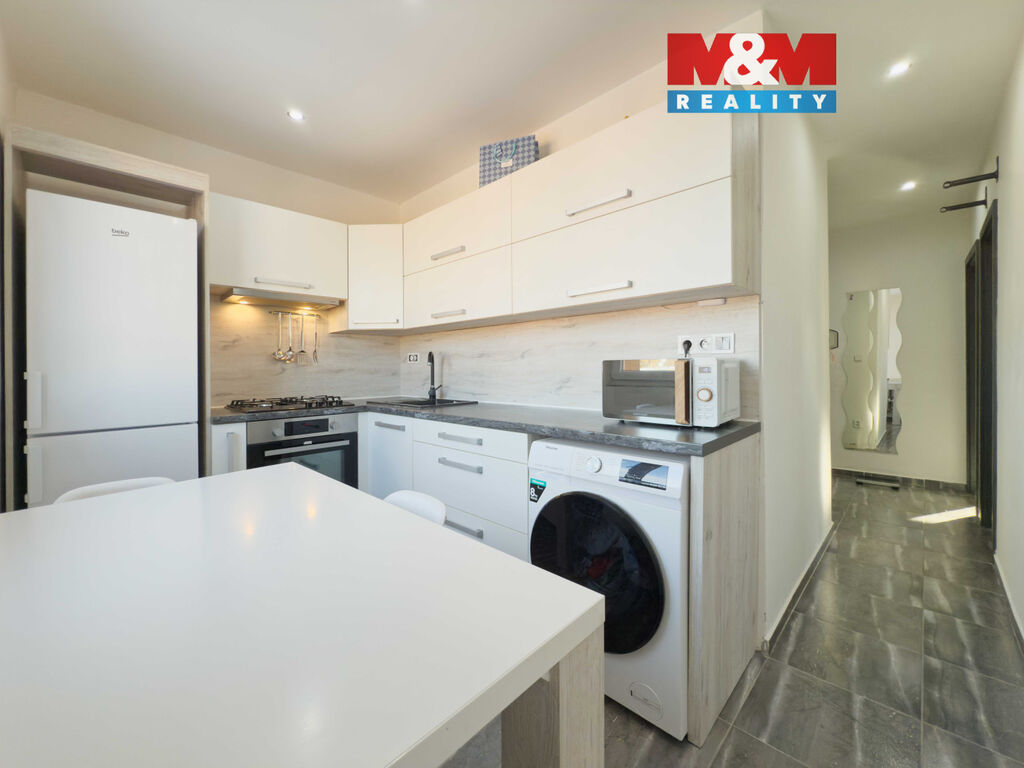 Nabízíme k prodeji vkusně zrekonstruovaný byt 2+1, nacházející se ve velice klidné části města Karviná. Byt o užitné ploše 55 m² je situován ve 4. patře panelového domu, který prošel velmi zdařilou rekonstrukcí. Moderní kuchyňská linka, zděné jádro a keramické obklady spolu s dlažbou v koupelně, kuchyni a na chodbě tvoří příjemné prostředí. Snížené stropy s LED osvětlením a plovoucí podlahy ve všech pokojích dodávají bytu moderní vzhled. K bytu náleží zasklená lodžie a sklepní koje. Výhodou je také plánovaná výstavba nových výtahů. Parkování je možné přímo u domu. Veškerá občanská vybavenost je v dosahu chůze. Pro více informací volejte makléři a domluvte si prohlídku.