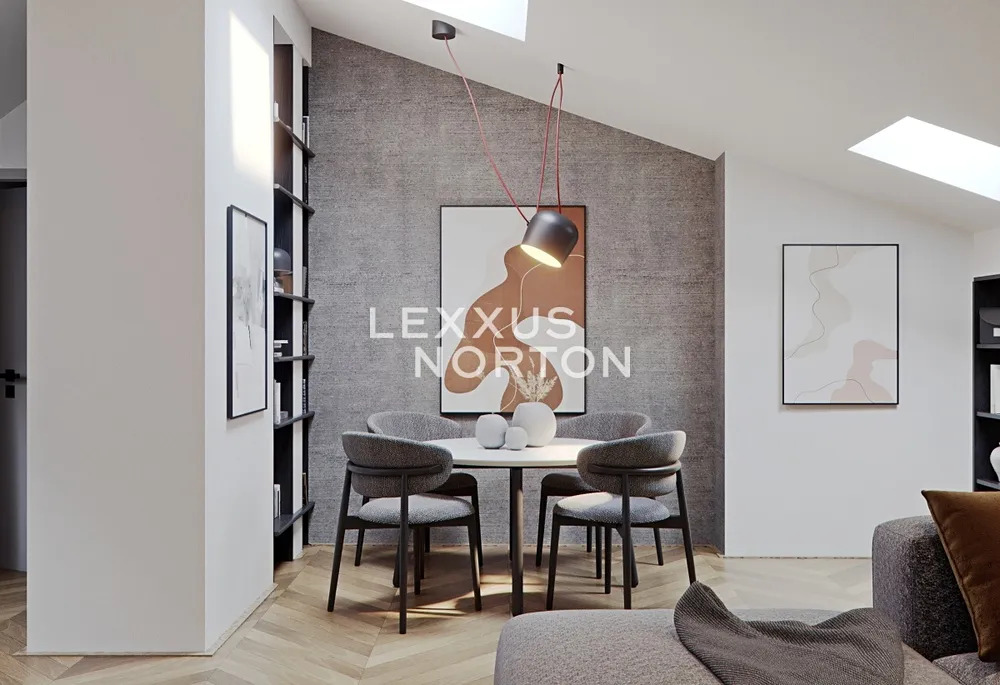 Interiér bytu působí velice reprezentativním dojmem. Klade důraz na komfort, funkčnost moderního životního stylu a původní eleganci tohoto historického domu. Mezi standardy bytu patří ateliérová okna, dřevěné parkety, kvalitní a trvanlivé materiály a moderní technologie jako např. hlasové a televizní vysílání, domácí telefon, kamerový systém ve vstupní hale aj. V ceně bytu je i kuchyňská linka.