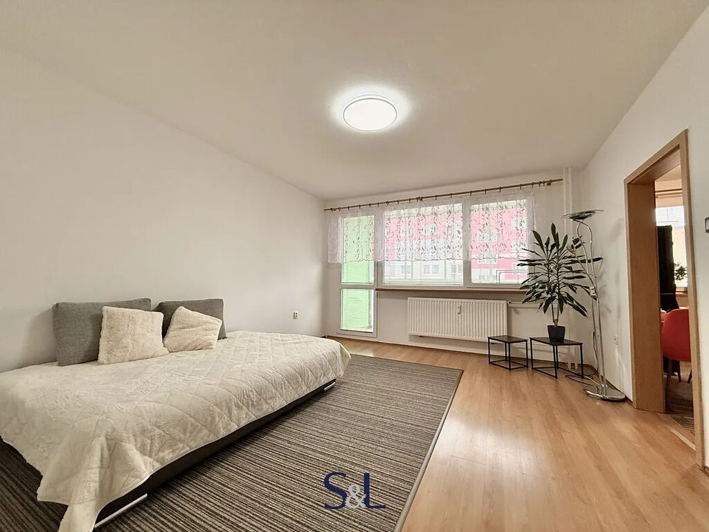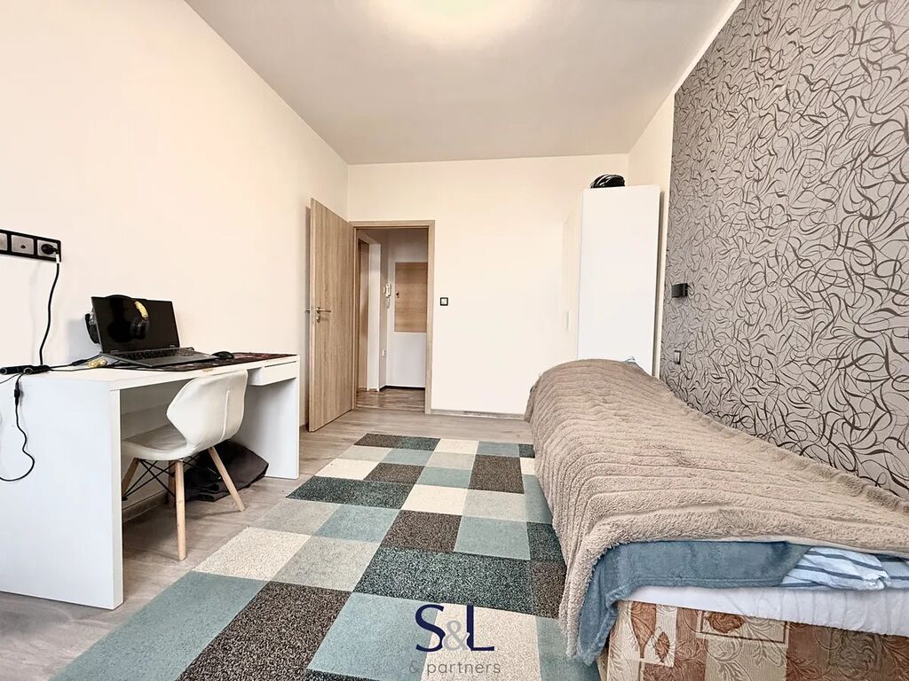 Dispozice je tvořena z ložnice, obývacího pokoje, dětského pokoje, prostorné chodby, kuchyně, koupelny a WC. Obrovskou výhodou je, že byt disponuje lodžií, ze které je nádherný výhled do přírody. K bytu patří sušárna, kterou nalezneme vedle bytu, sklepní kóje a pronajímá se bez vybavení. Nastěhování je možné od 1.1.2026.