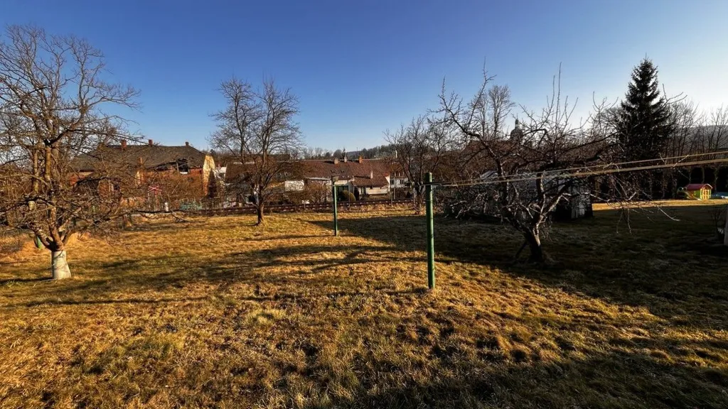 Nyní k samotnému domu. Nabízí přesně co většina z nás hledá. Při procházení jednotlivých částí domu cítíte kouzlo minulosti, naše předky a máte pocit jako, když se vracíte do dětství. V přízemí je dominantou velký obývací pokoj ( cca 28 m2 ) ze kterého jsou krásné výhledy do zahrady a na již zmíněný kostel sv. Václava. Vedle obývacího pokoje je útulná kuchyňka ( cca 9m2 ). Z chodby přízemí se dostanete do sklepa a nebo jeho patra. Tam vás čekají další tři útulné pokoje kde můžete spočinout. Pokud máte nepotřebné věci můžete je uskladnit na půdě. V přední části domu máme koupenu s toaletou.