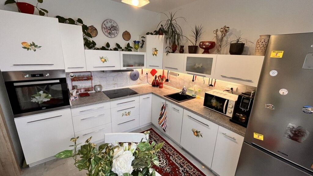 Samotný byt vás uvítá prostornou chodbou, ze které se dostanete do dalších částí bytu. První pokoj vlevo má cca 16 m2 užitné plochy a nyní slouží jako pokoj pro hosty. V zadní části po levé straně nalezneme ložnici s plochou přes 11 m2. Zděná koupelna s toaletou je na konci chodby vpravo. Obývací pokoj má rozlohu přes 19 m2 a nabízí dostatek prostoru k relaxaci stejně jako zasklená lodžie vedle něj. Tam si můžete vychutnat například ranní kávu. Sousedící kuchyň má bohatě dostačujících 14 m2. Celý prostor působí velmi vzdušně, svěže s dostatkem světla. Kompletní rekonstrukce bytu proběhla před 3 lety, jsou zde použity kvalitní materiály a je to na bytě rozhodně znát. V obývacím pokoji a ložnici je klimatizace, který umí i topit.