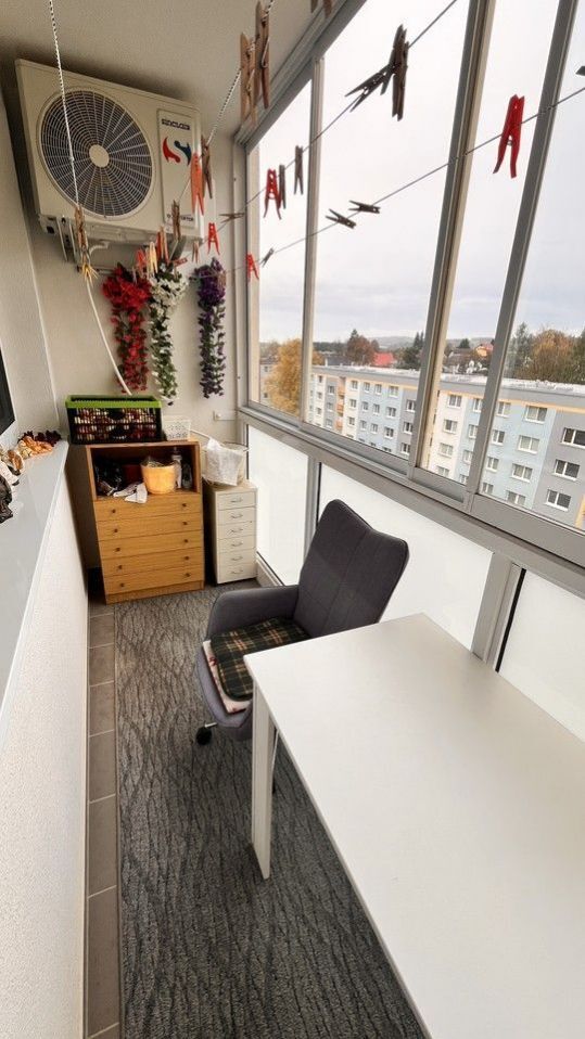Prodej bytu 3+1+L v Rumburku Dovoluji si vám nabídnout prodej družstevního bytu 3+1 se zasklenou lodžií, zděnou koupelnou, sklepem s užitnou plochou cca 73 m2 v Rumburku. Byt se nachází ve 6. patře revitalizovaného zatepleného domu na sídlišti Podhájí. Nespornou výhodou je jeho výborná poloha. Okna obývacího pokoje a kuchyně směřují na jih a nabízí výhledy do lesa, který je vzdálen necelých 200 m. Odtud můžete podnikat procházky například na nedalekou rozhlednu Dymník.