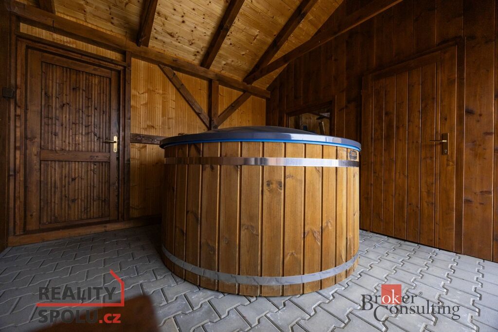 V přízemí se nachází obývací pokoj s kuchyňským koutem, ložnice a koupelna. V podkroví jsou další dvě ložnice a druhá koupelna. Dům je částečně podsklepený, což poskytuje praktické prostory pro uskladnění a technické zázemí. Na pečlivě udržované zahradě najdete garáž, saunu, letní kuchyni s krbem a krytým posezením, zpevněné plochy ze zámkové dlažby a také vyvýšené záhony pro pěstování vlastní zeleniny.