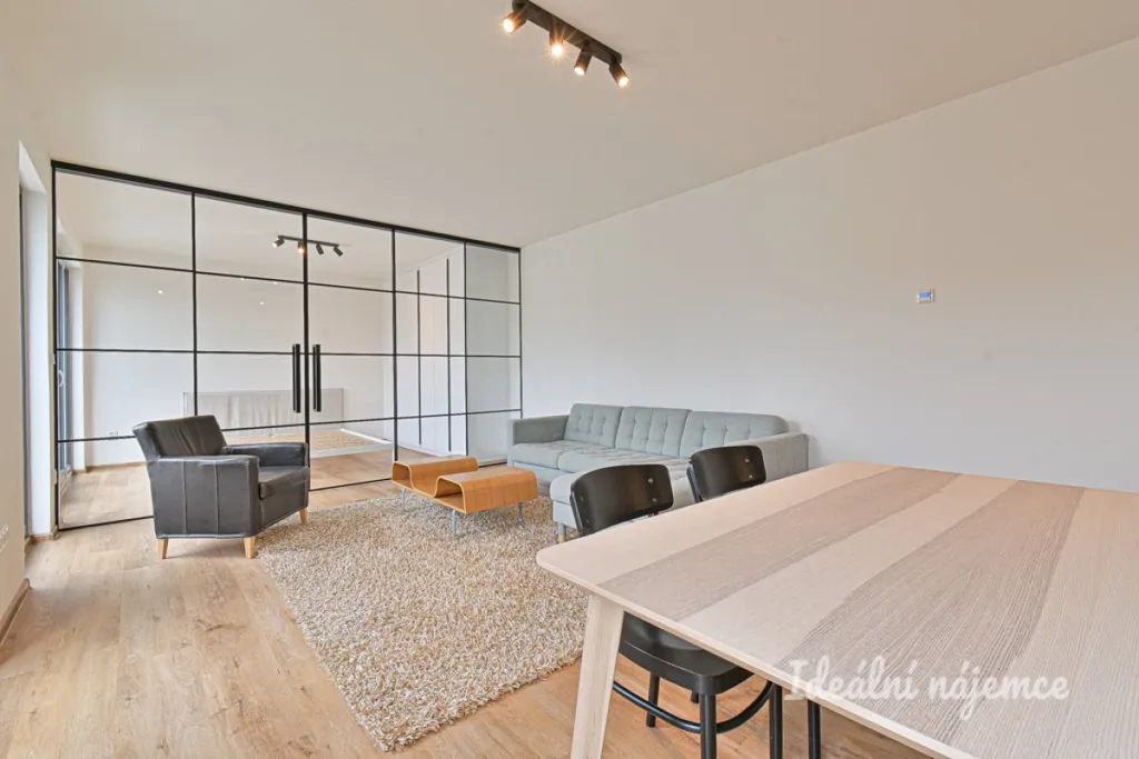 Byt se nabízí plně vybavený. Kuchyně disponuje lednicí, myčkou, elektrickou troubou, varnou deskou, mikrovlnnou troubou a digestoří. Obývací část je zařízena pohovkou, konferenčním stolem, křeslem a jídelním stolem se židlemi. Součástí ložnice je postel s roštem a vestavěná skříň. V koupelně je sprchový kout, umyvadlo a toaleta. V předsíni najdeme skříň a zrcadlo.