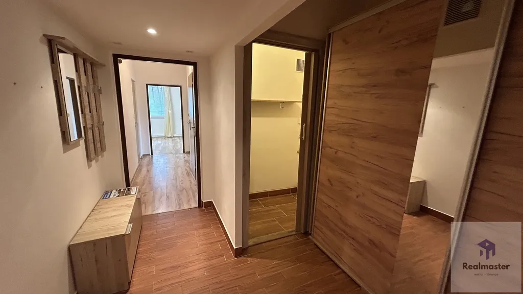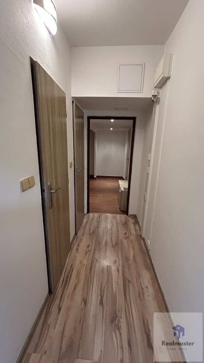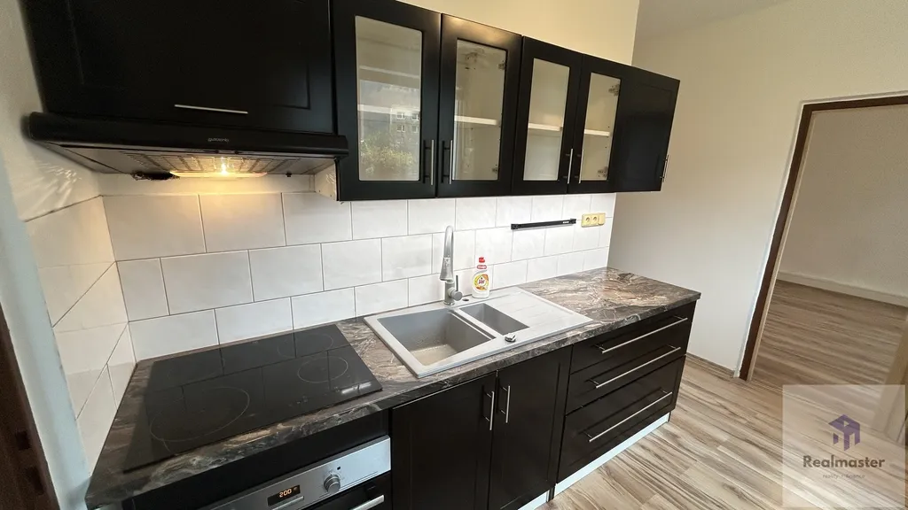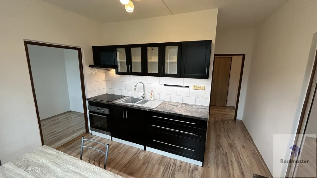 Byt má pěknou kuchyňskou linku s elektrickou varnou deskou. Jídelní stůl a židle. Dále je k dispozici šatní skříň.