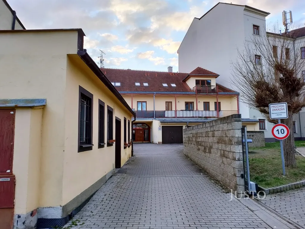 Příjezd ke garáži je ulicí Za Gymnáziem.