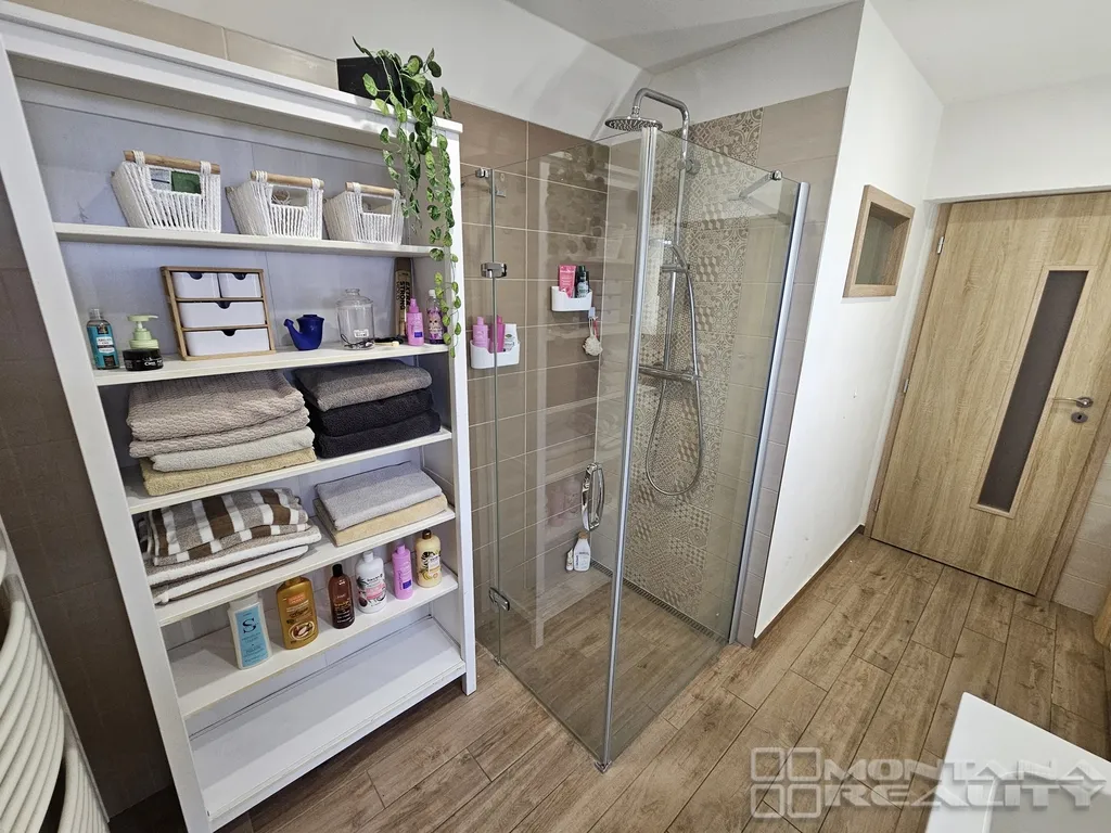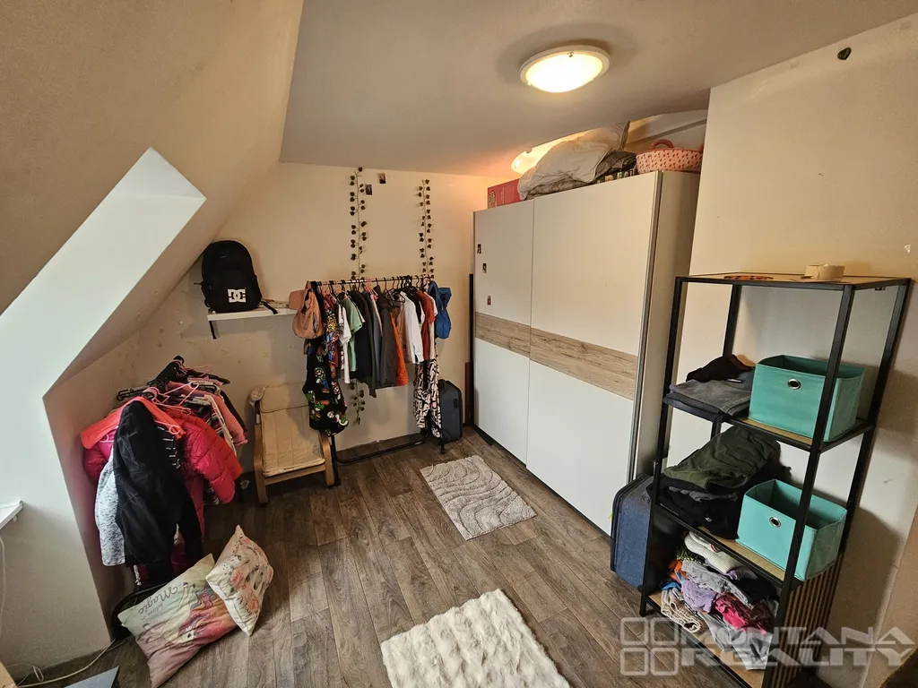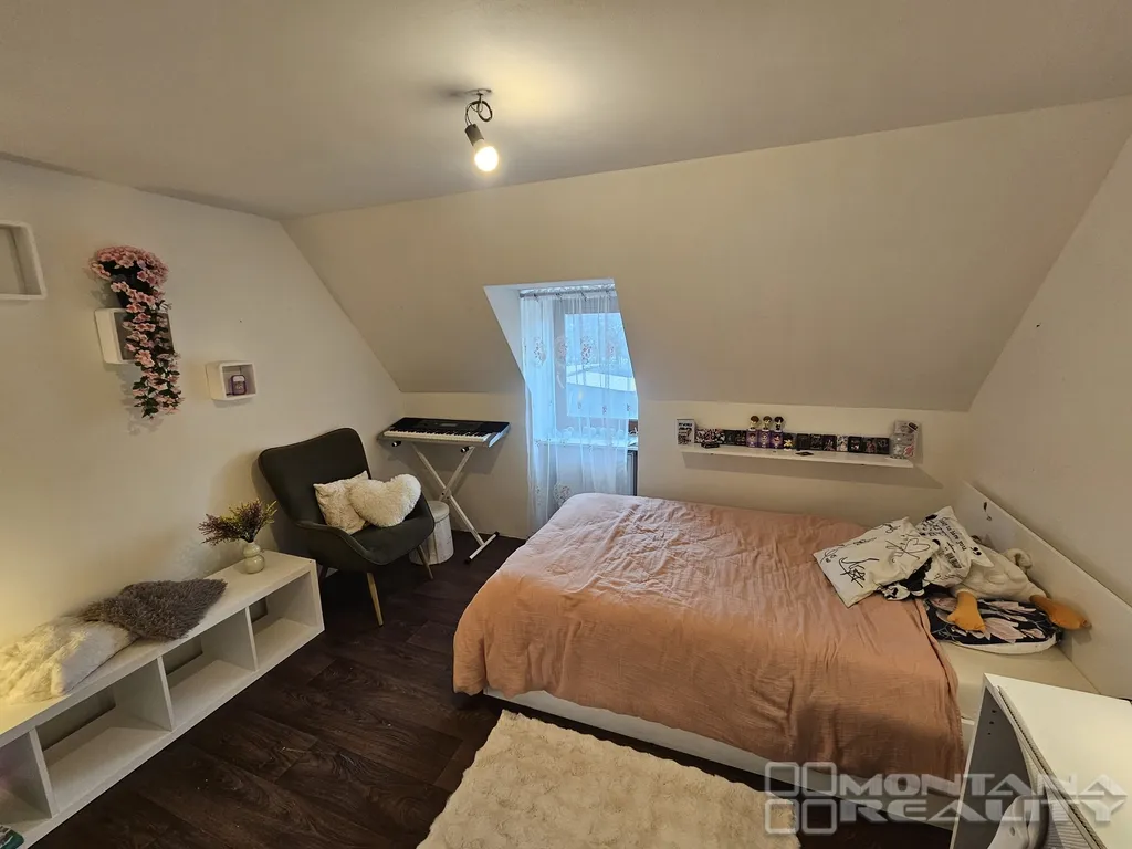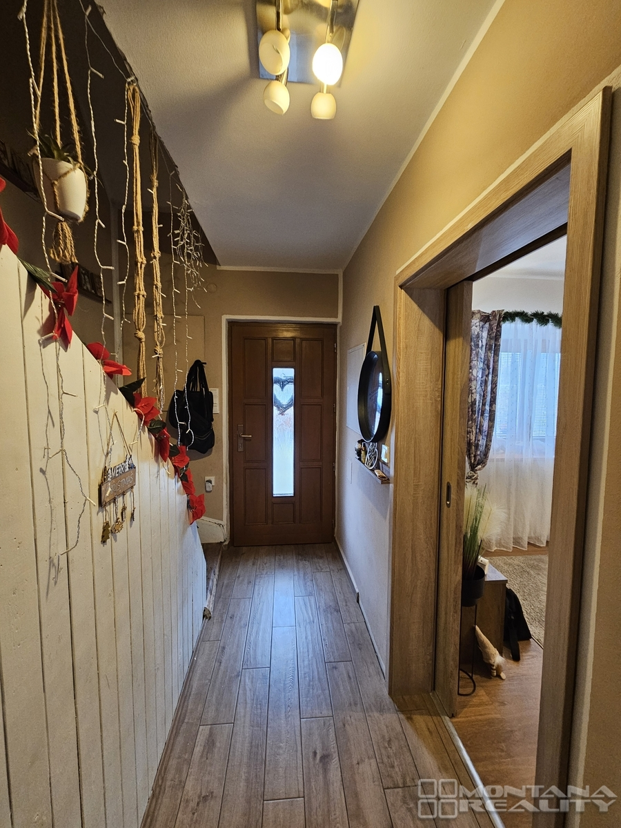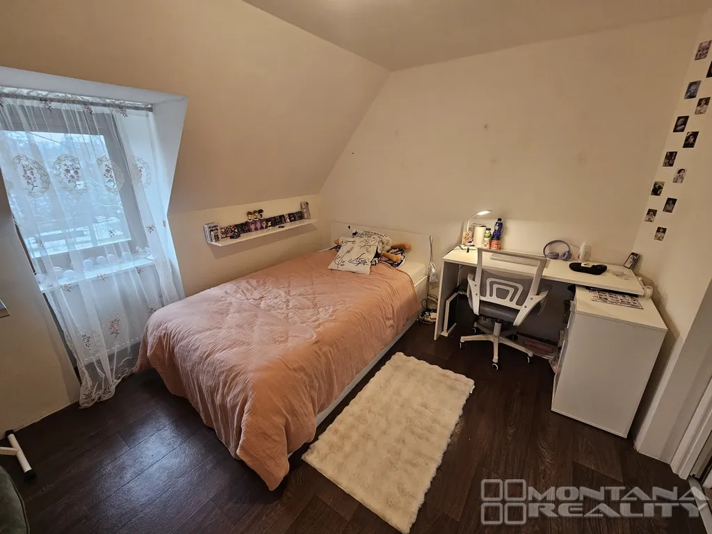 V patře se nachází dvě samostatné ložnice, prostorná chodba využívaná jako herna pro děti, malá koupelna s WC a úložný prostor. Na chodbě jsou nachystané rozvody na instalaci kuchyňské linky což by umožnilo dům využívat dvougeneračně.