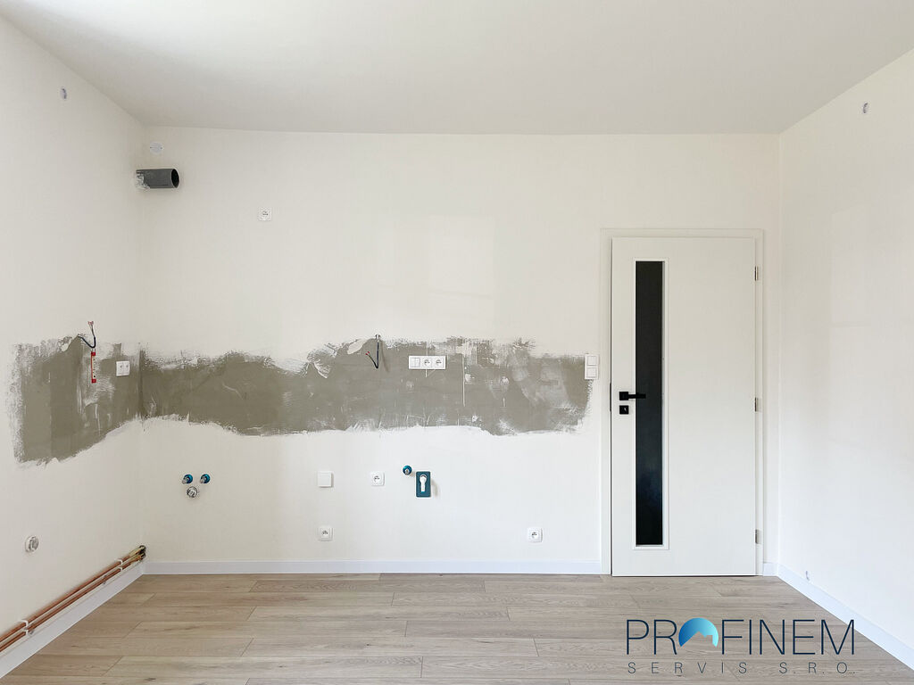 Byt se nachází v přízemí bytového domu s 12 byty a nabízí moderní dispozici propojení kuchyně s obývacím pokojem, což je současný trend a poskytuje velkorysý prostor pro pohodlné bydlení. Kuchyňský kout je pečlivě připraven tak, aby si každý mohl zařídit kuchyňskou linku podle svých představ – ať už preferujete menší pracovní plochu, nebo naopak potřebujete dostatek místa pro vaření. Na tuto místnost navazuje prostorná ložnice.
