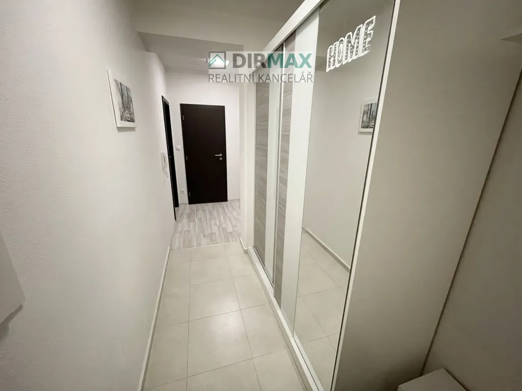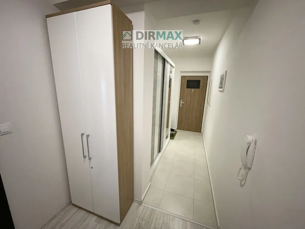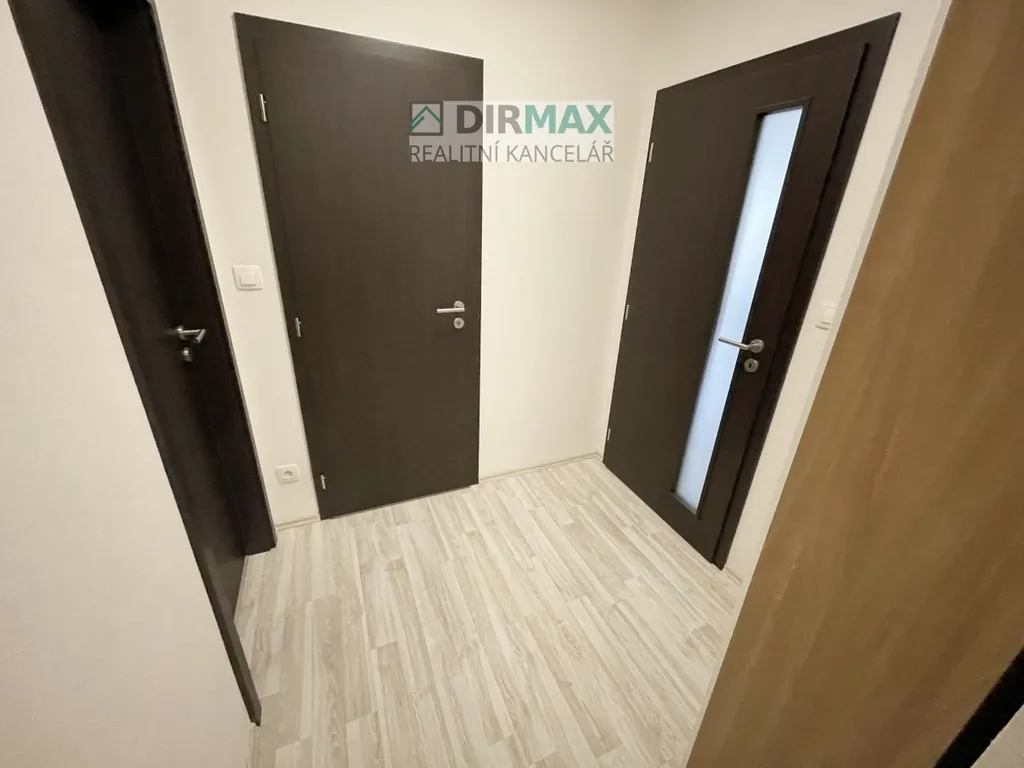 Při vstupu do bytu je skutečně prostorná předsíně, kde jsou a budou větší skříně (viz. foto) s úložným prostorem. Byt je jinak prázdný.