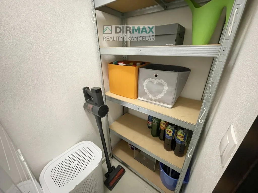 Z předsíně se pak vstupuje do technické místnosti, komory, kde je přípojka na pračku a sušičku a prostor na regály s velkým úložným prostorem. Na patře je pak další velká uzamykatelná komora patřící výhradně k tomuto bytu. Na podlaze je dlažba, vlastní osvětlení a 2x uzamykatelné dveře. Ideální prostor pro umístění kol a dalšího vybavení. Vstup do domu je bezbariérový, výtah dostatečné velikosti v domě je. Bez jediného schodu je přístup všude.