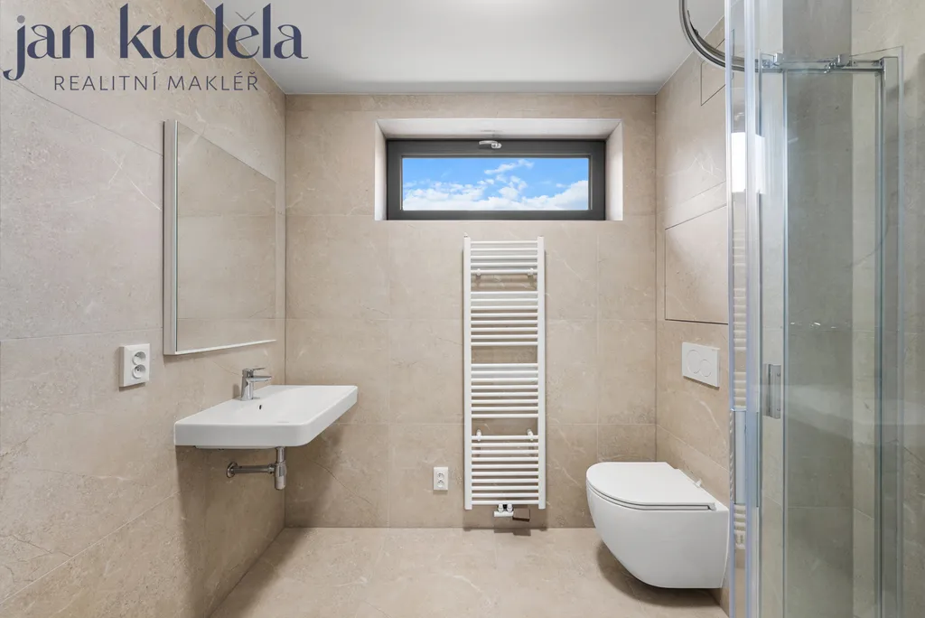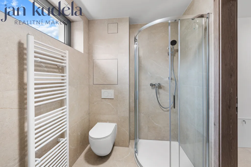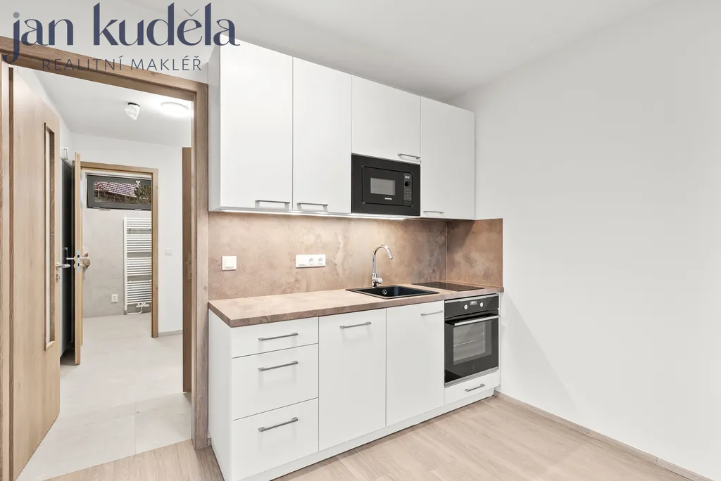 Při vstupu do bytu se nacházíte v předsíni s vestavěnou skříní přes celou šířku chodby, která poskytuje nadstandardní úložný prostor. Z předsíně je vstup do koupelny se sprchovým koutem, toaletou a místem pro pračku. Hlavní obytný prostor je propojen s kuchyňským koutem vybaveným vestavěnou myčkou, troubou, indukční varnou deskou a samostatnou lednicí. Z pokoje je vstup na balkon orientovaný do klidné části okolí.