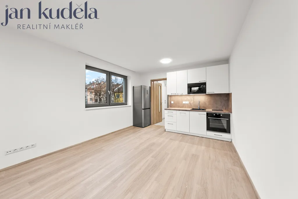 K pronájmu nabízíme zcela nový a dosud neužívaný byt o dispozici 1+kk o užitné ploše 29,5 m² s balkonem o velikosti 3,4m² a sklepní kójí 1,8m². Byt se nachází ve 3. nadzemním podlaží právě zkolaudovaného domu na ulici Líšenská v Brně. Jedná se o první pronájem. Dům není vybaven výtahem.