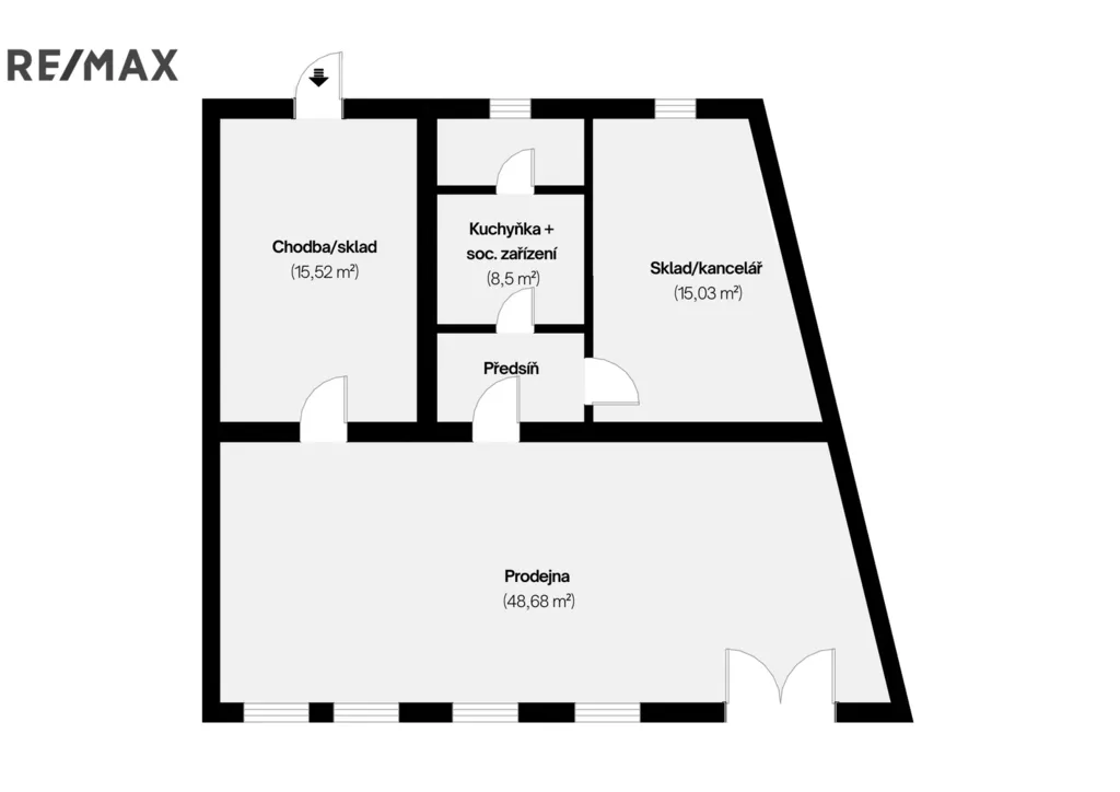 - Ideální prostor: Výlohy, prodejní plocha, kancelář, sklad i zázemí